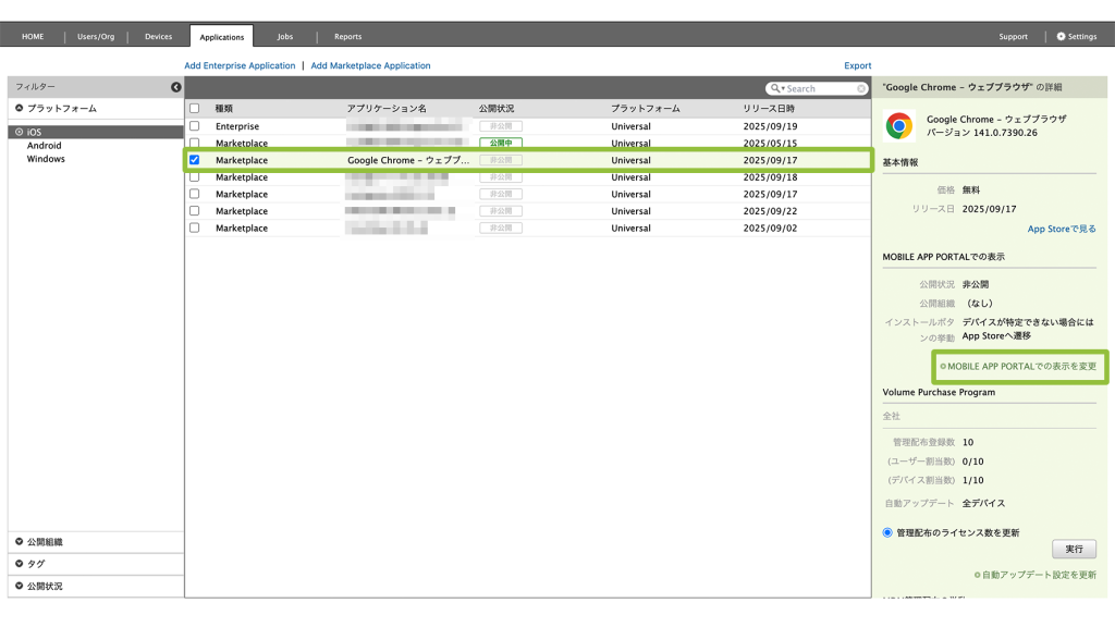 - SecuredBrowser から、MOBILE APP PORTAL 経由でアプリケーションをインストールする