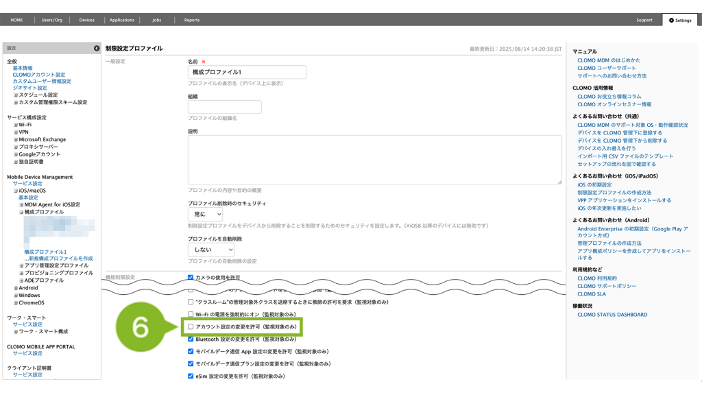デバイスに適用中の制限設定プロファイルの設定内容を、一時的に変更したい場合の手順をご紹介します。