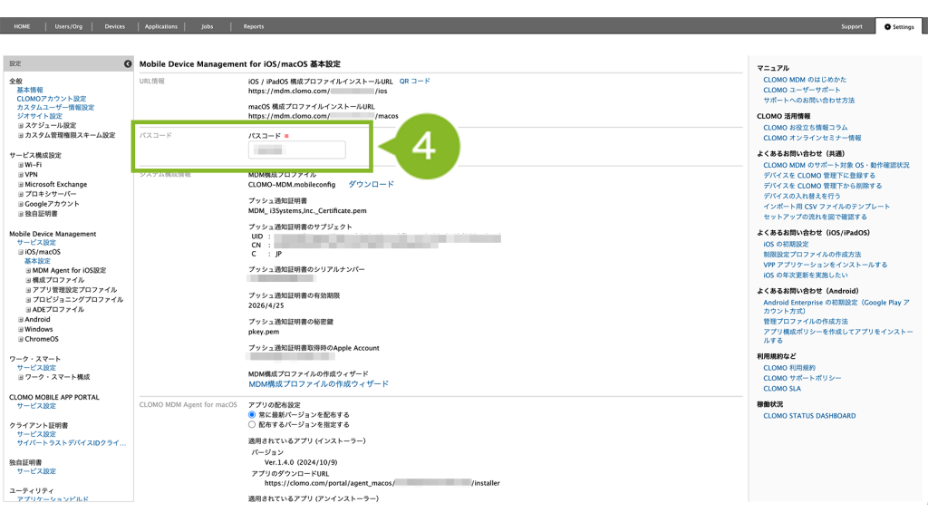 CLOMO MDM Agent for iOS アプリのセットアップ時などに入力が必要な、「ドメイン」「パスコード」の確認方法をご案内します。