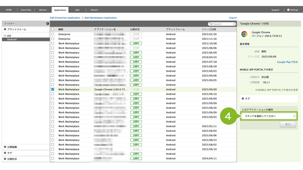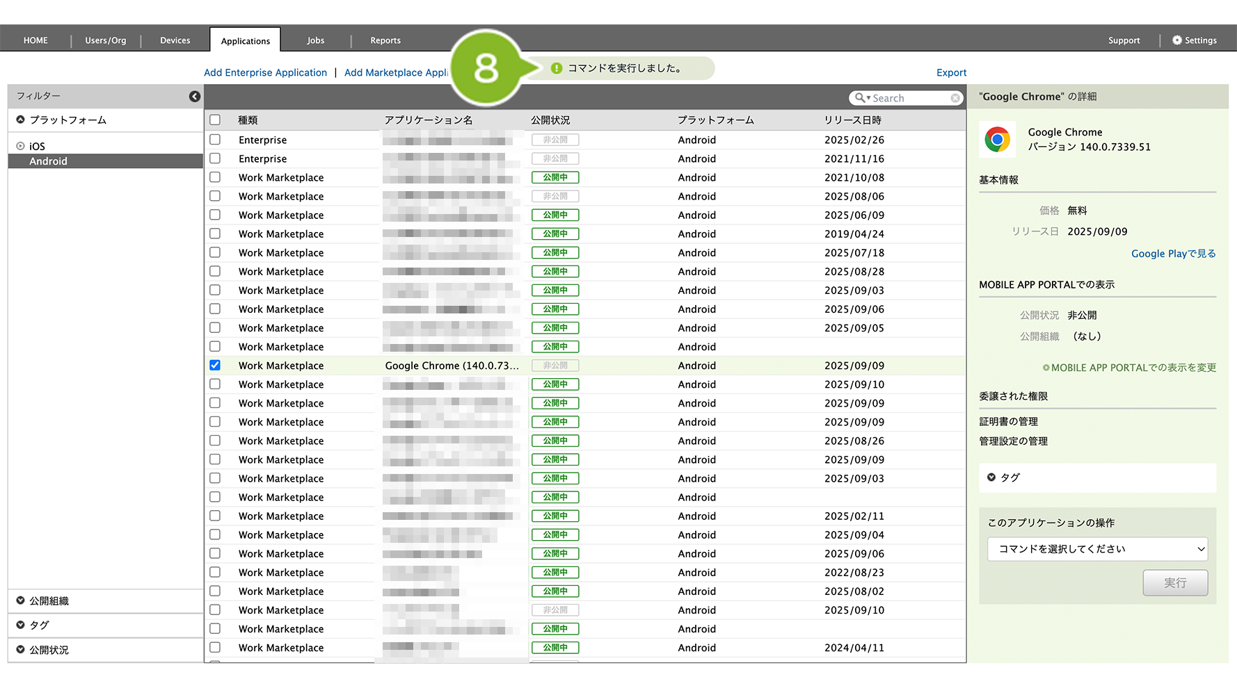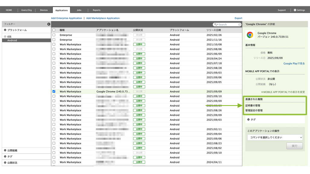 ※ CLOMO MDM Agent for Android には権限委譲のコマンドを実行することができません。