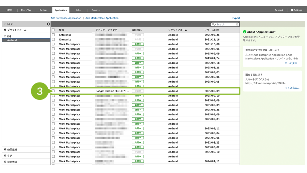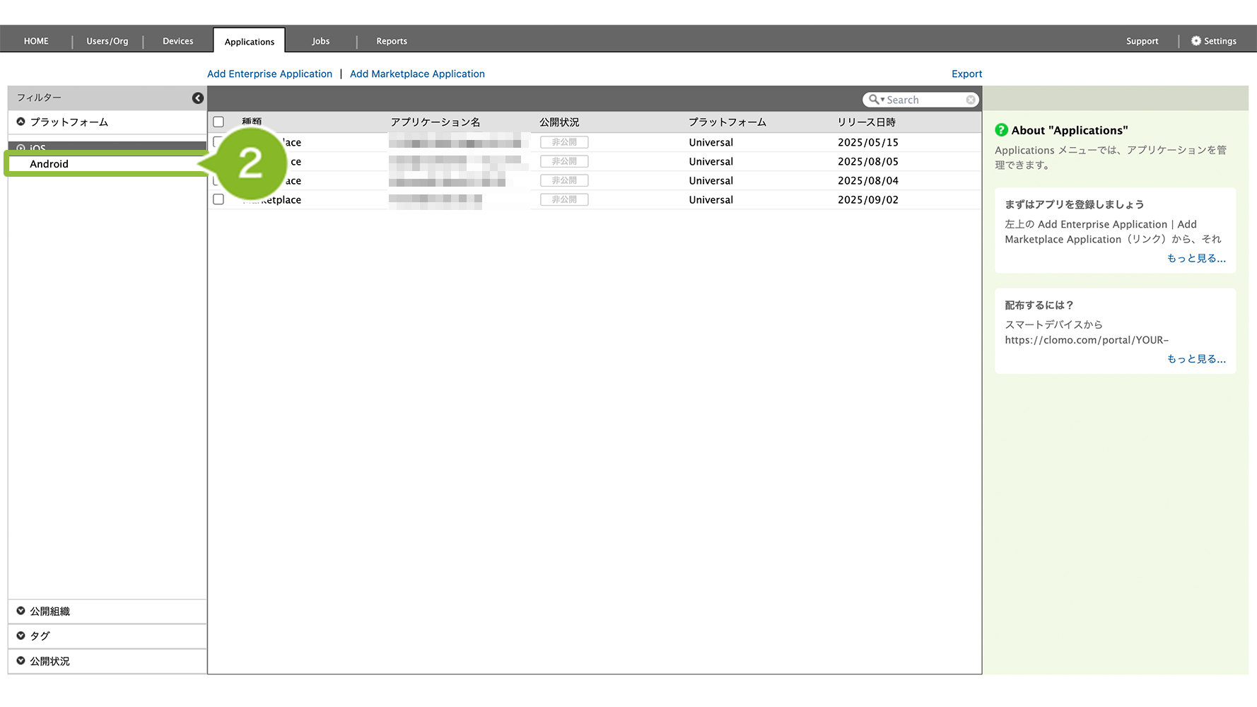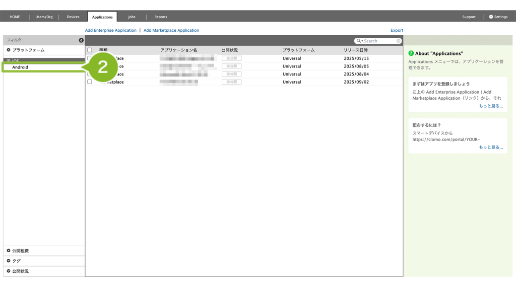 1. CLOMO PANEL にログイン後、[Applications]をクリックします。