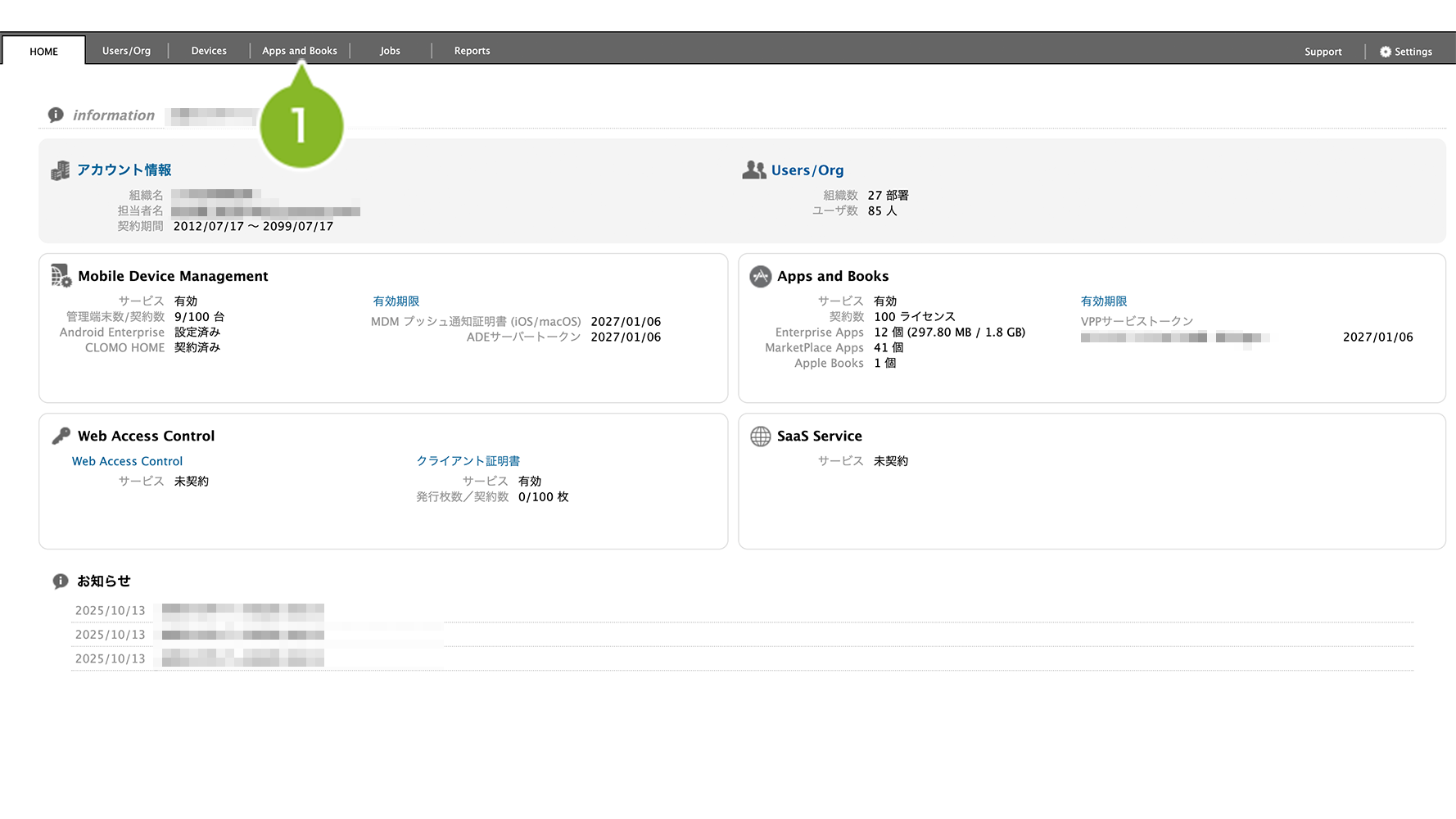 1. CLOMO PANEL にログイン後、[Apps and Books]をクリックします。
