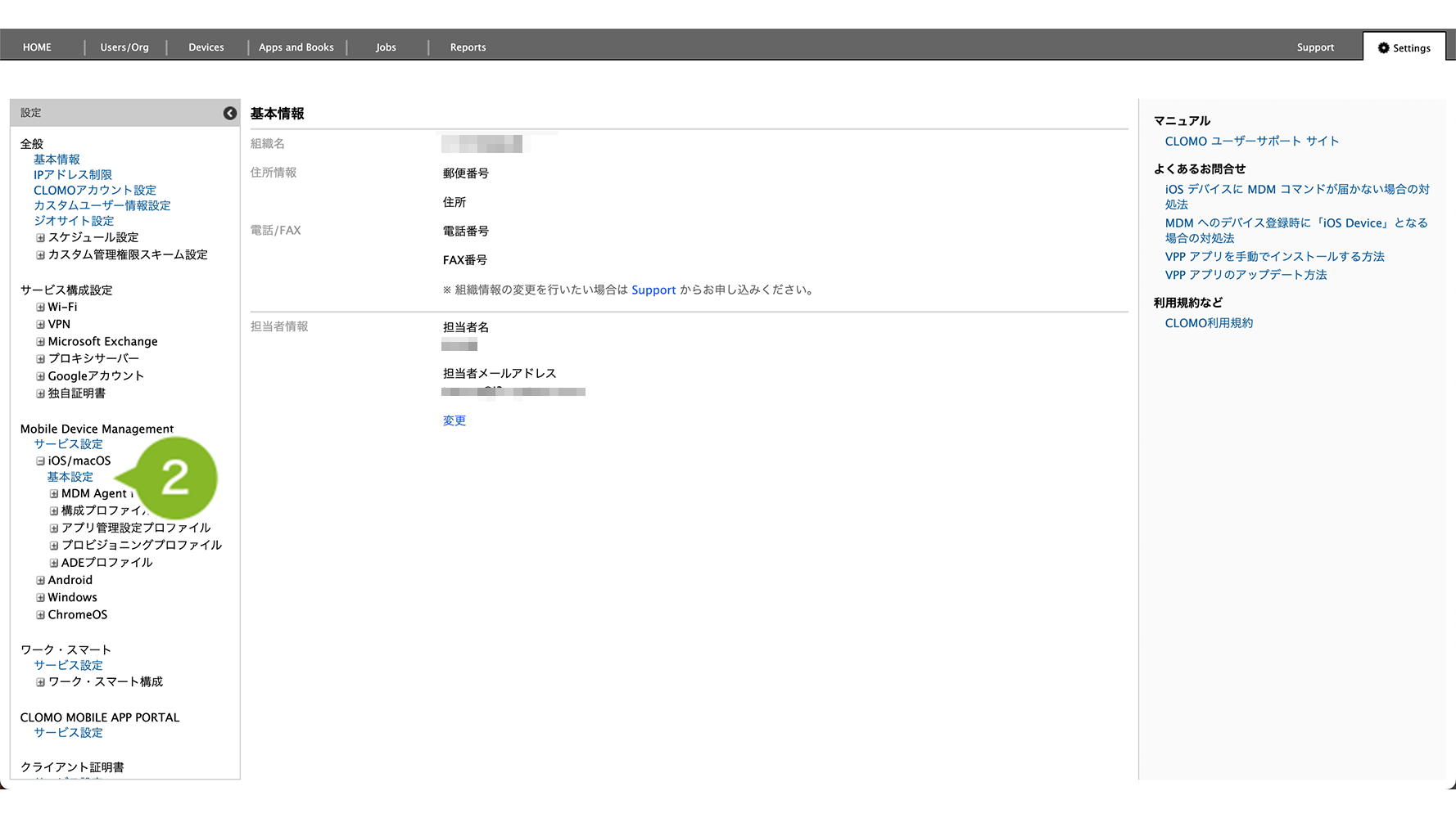 2. Mobile Device Management の[iOS / macOS]もしくは[Android]を選択し、[基本設定]をクリックします。
