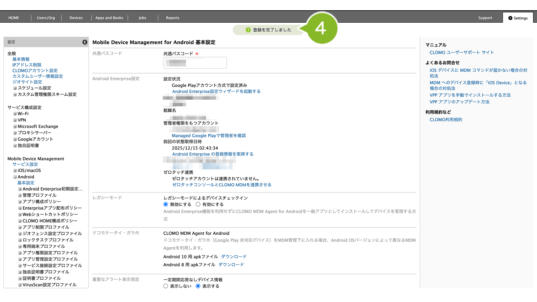 2. Mobile Device Management の[Android]を選択し、[基本設定]をクリックします。