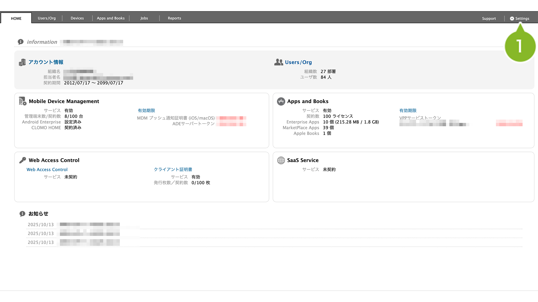 1. CLOMO PANEL にログイン後、[Settings]をクリックします。