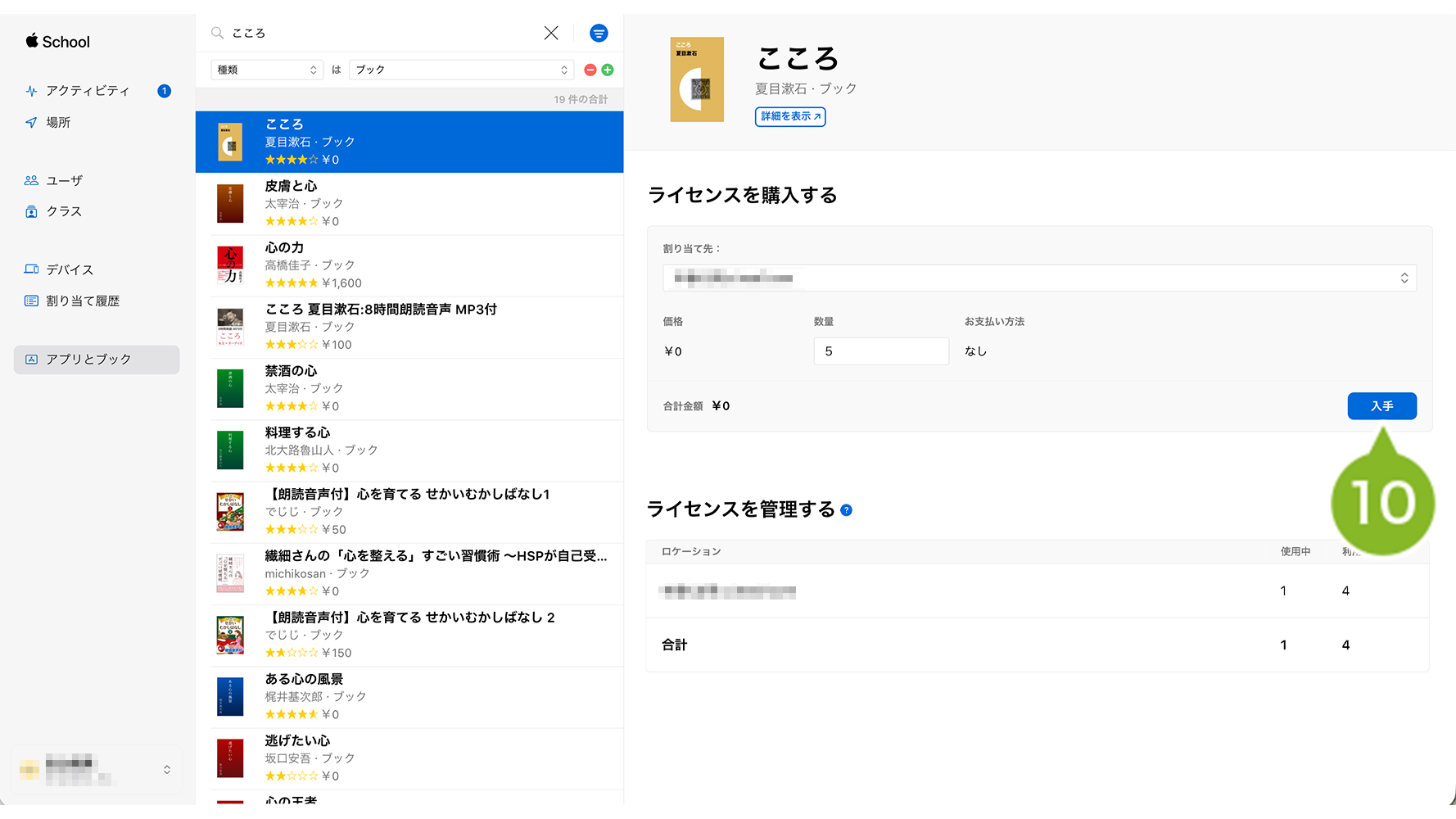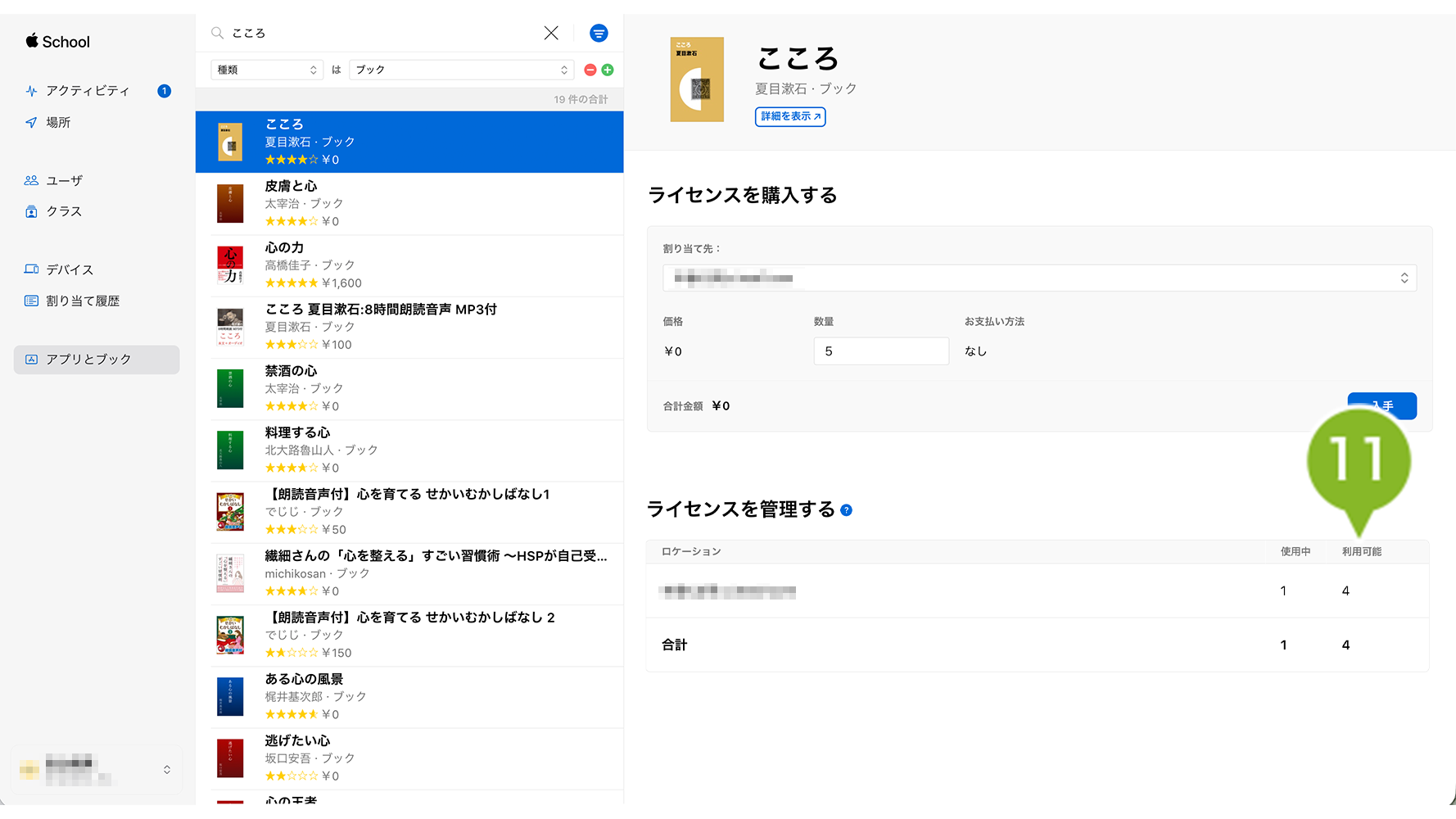 11. 購入後、「ライセンスを管理」項目の「利用可能」の数量が更新されます。
