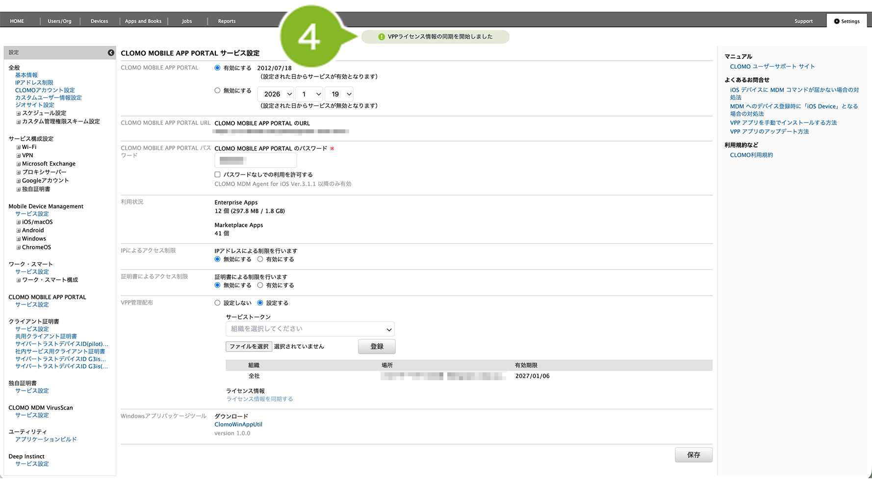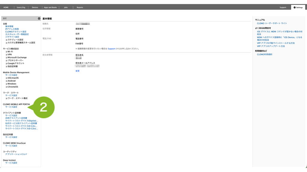 2. 「CLOMO MOBILE APP PORTAL」の [ サービス設定 ] をクリックします。