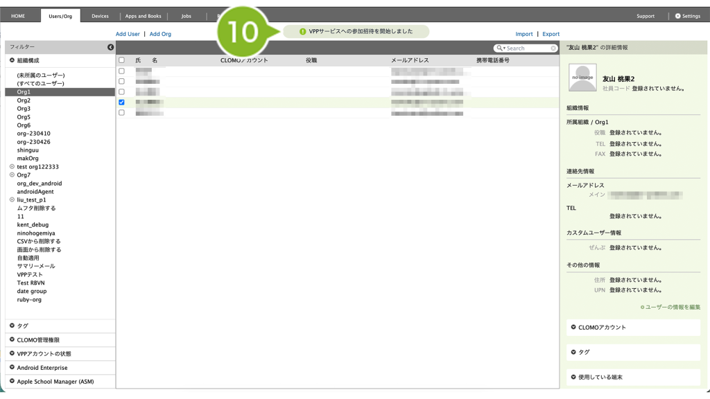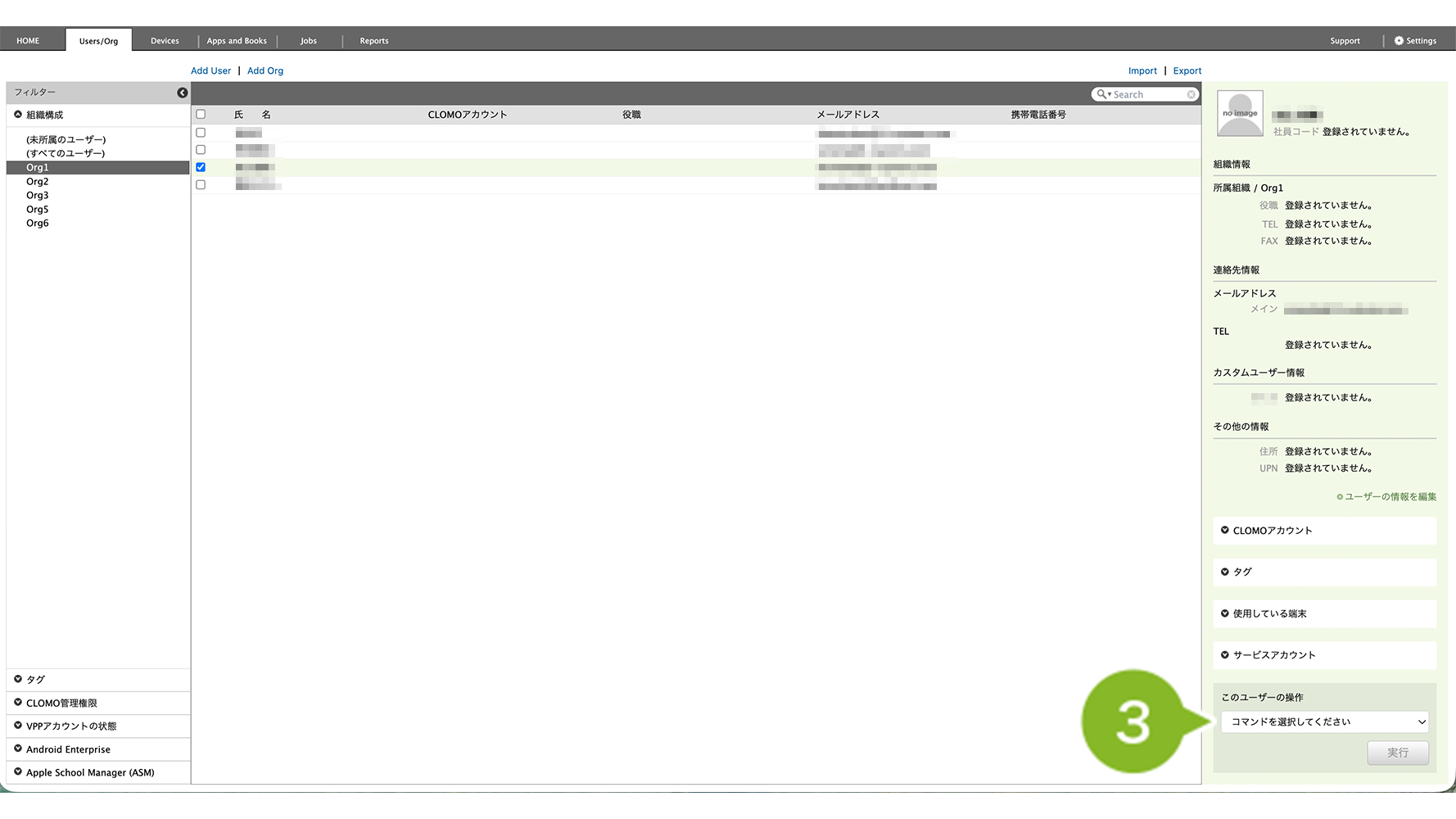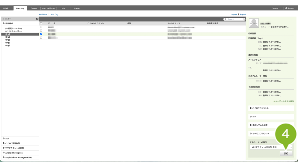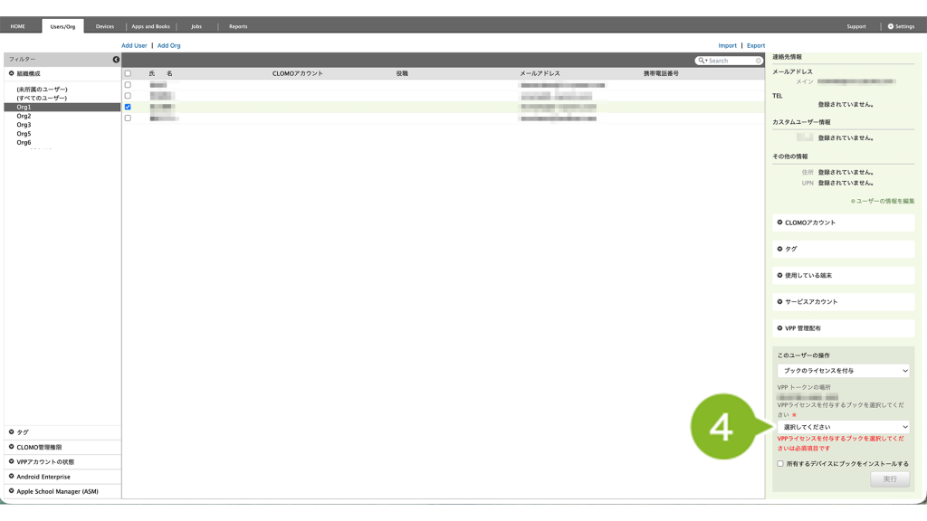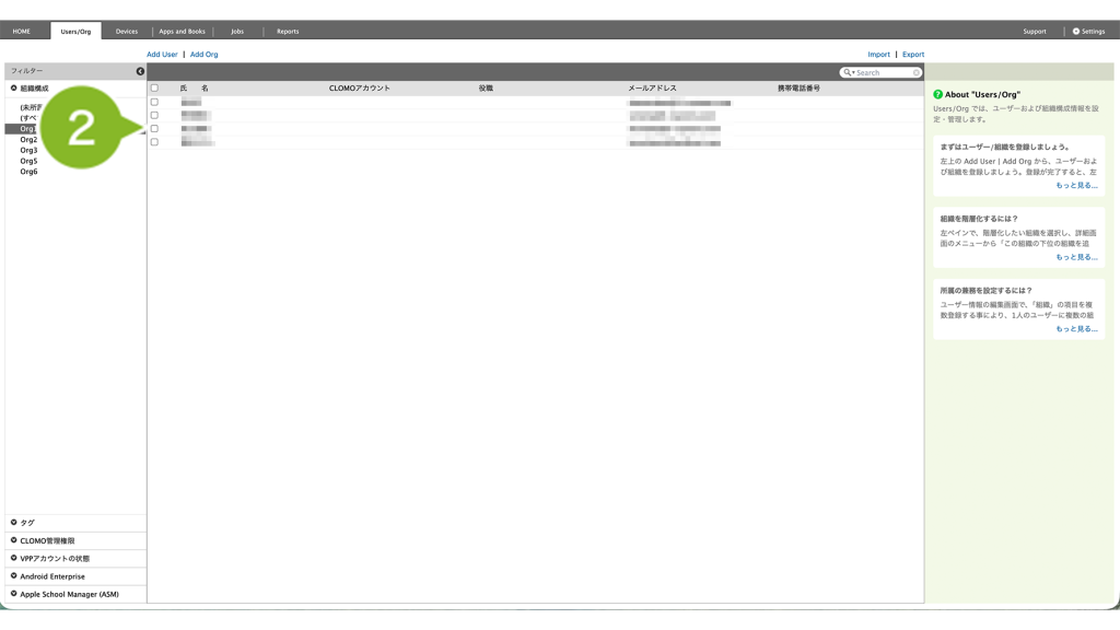 1. CLOMO PANEL にログイン後、[Users/Org]をクリックします。