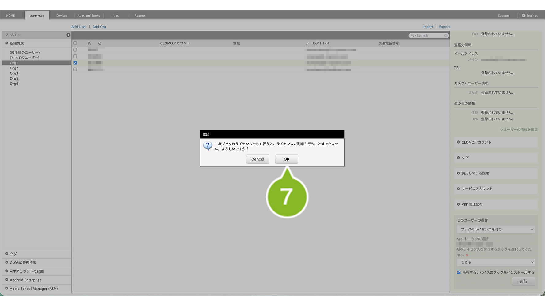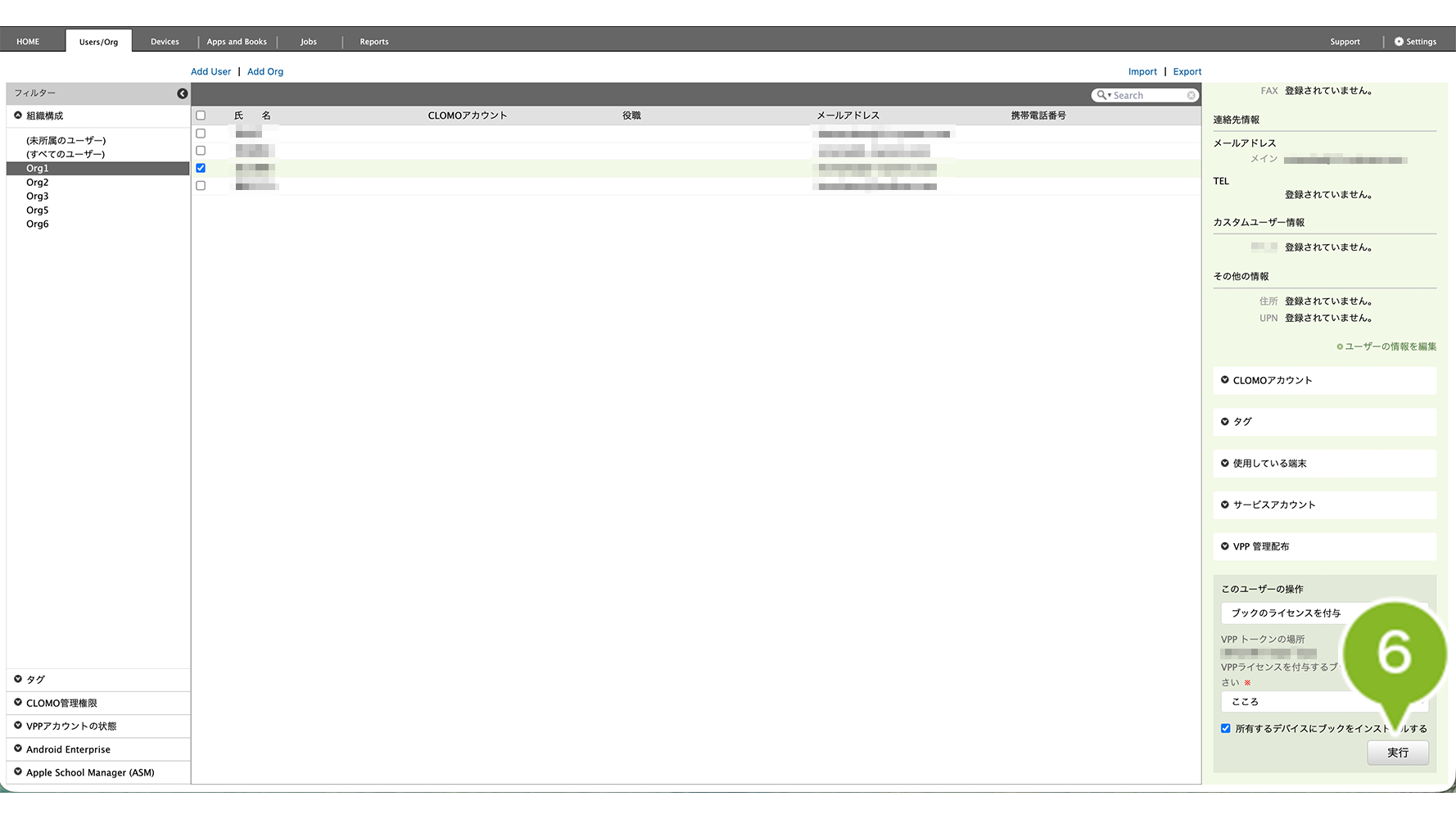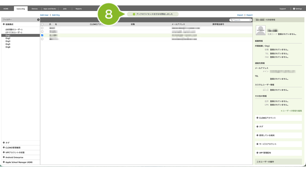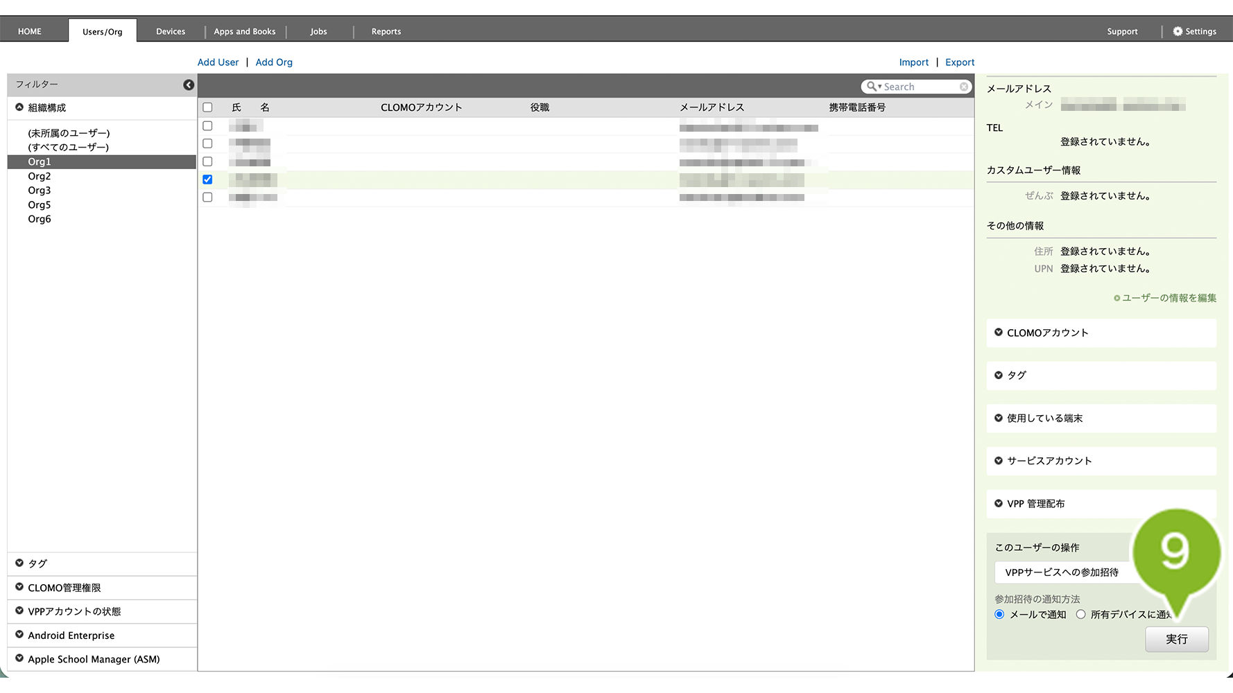 1. CLOMO PANEL にログイン後、[Users/Org]をクリックします。