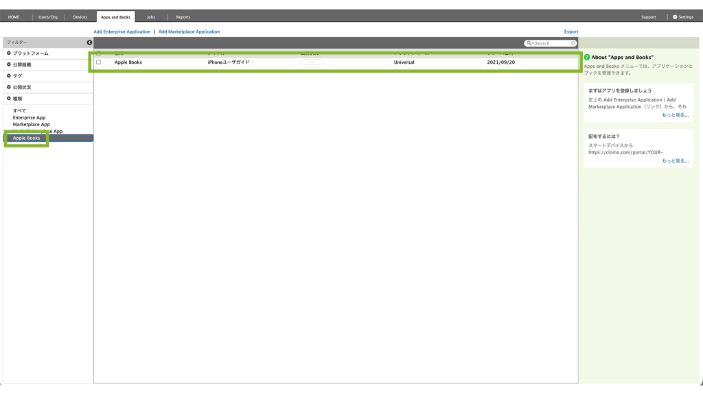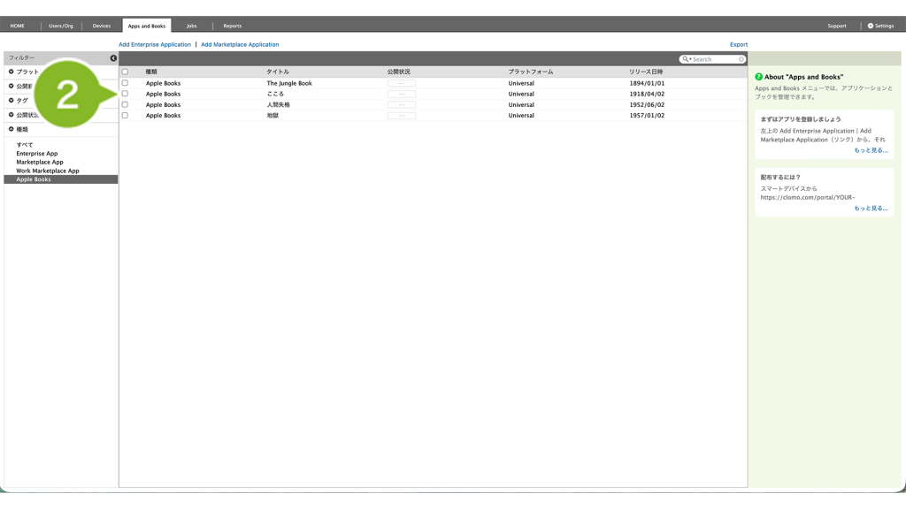 1. CLOMO PANEL にログイン後、[Apps and Books]をクリックします。