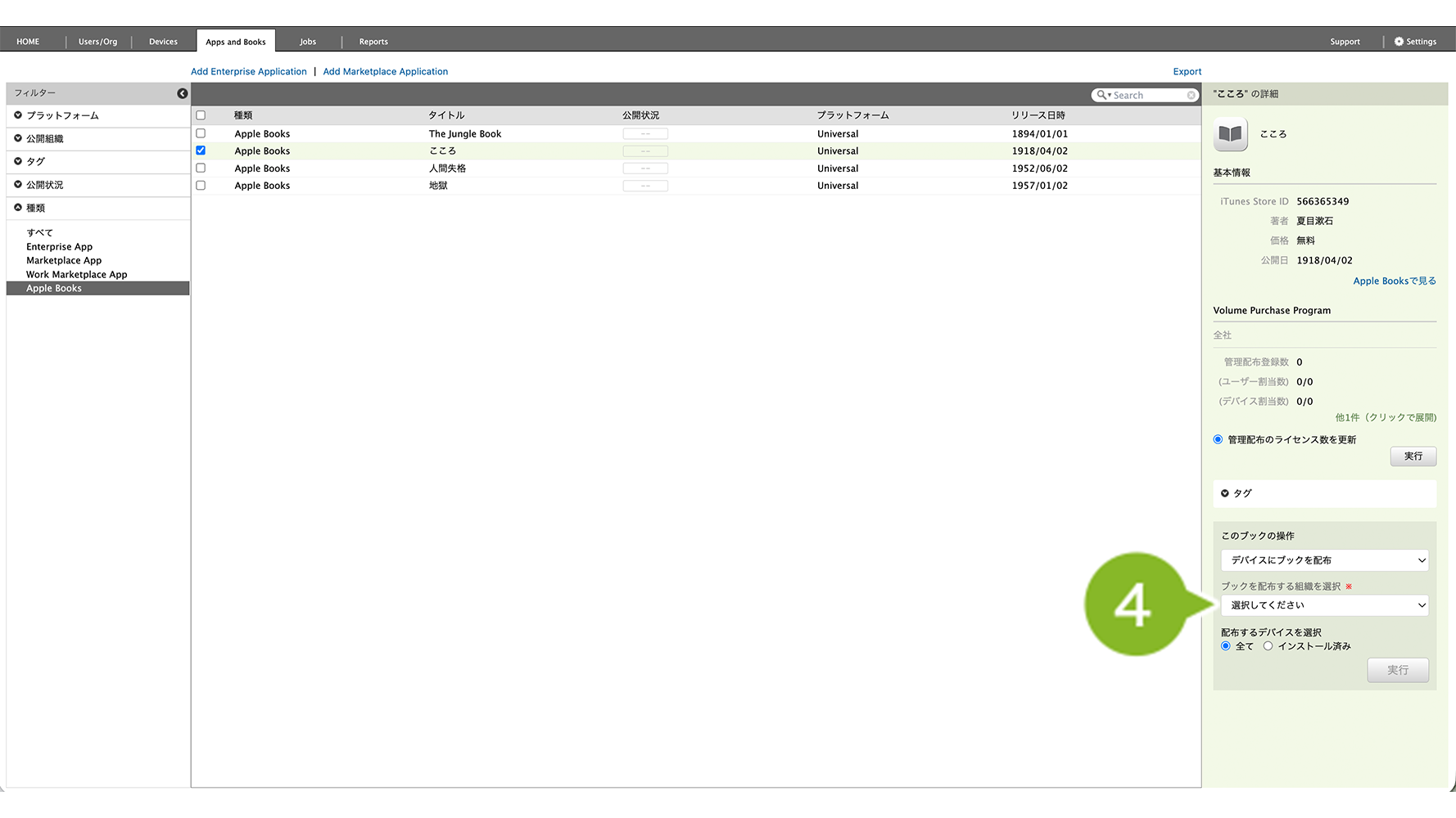VPP を利用して、ブックをデバイスに配布する操作の流れをご紹介します。