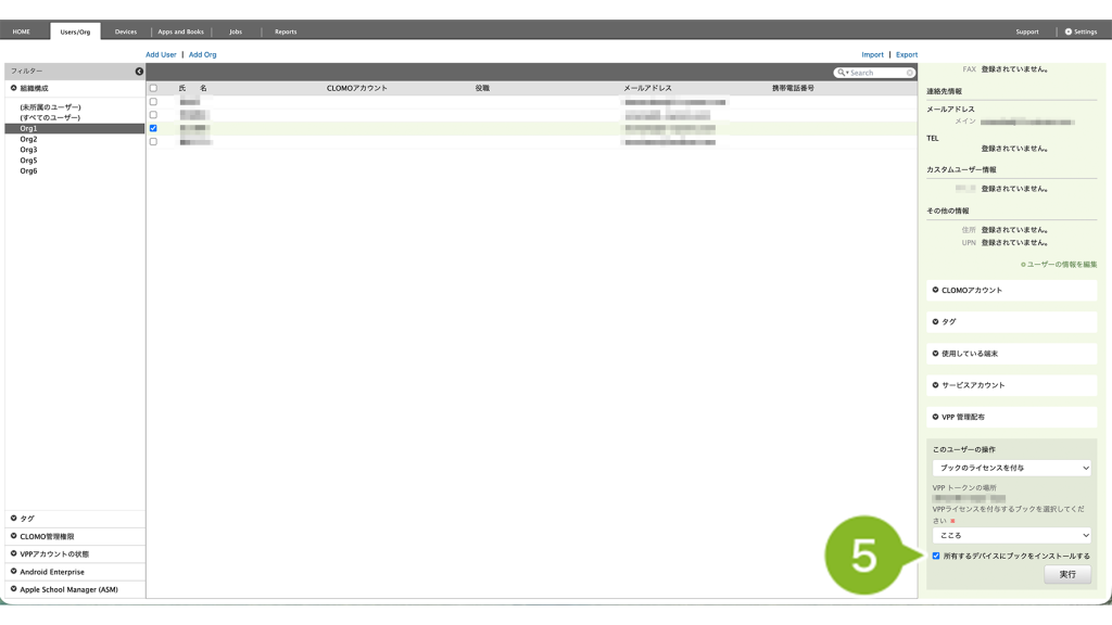 2. 配布したいブックの VPP ライセンスが付与されているユーザーを選択します。複数選択も可能です。