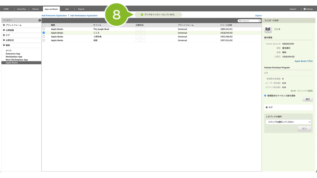 VPP ライセンスは付与済みで、ブックのインストールは未完了のデバイスに、ブックをインストールする手順をご案内します。