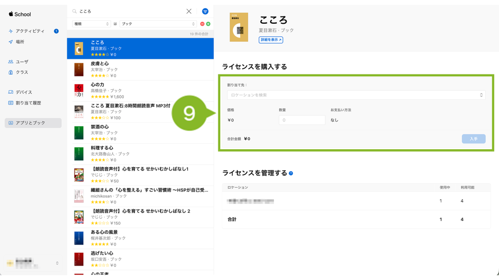 Apple Business Manager(ABM)/ Apple School Manager(ASM)で、配布したいブックの VPP ライセンスを購入します。