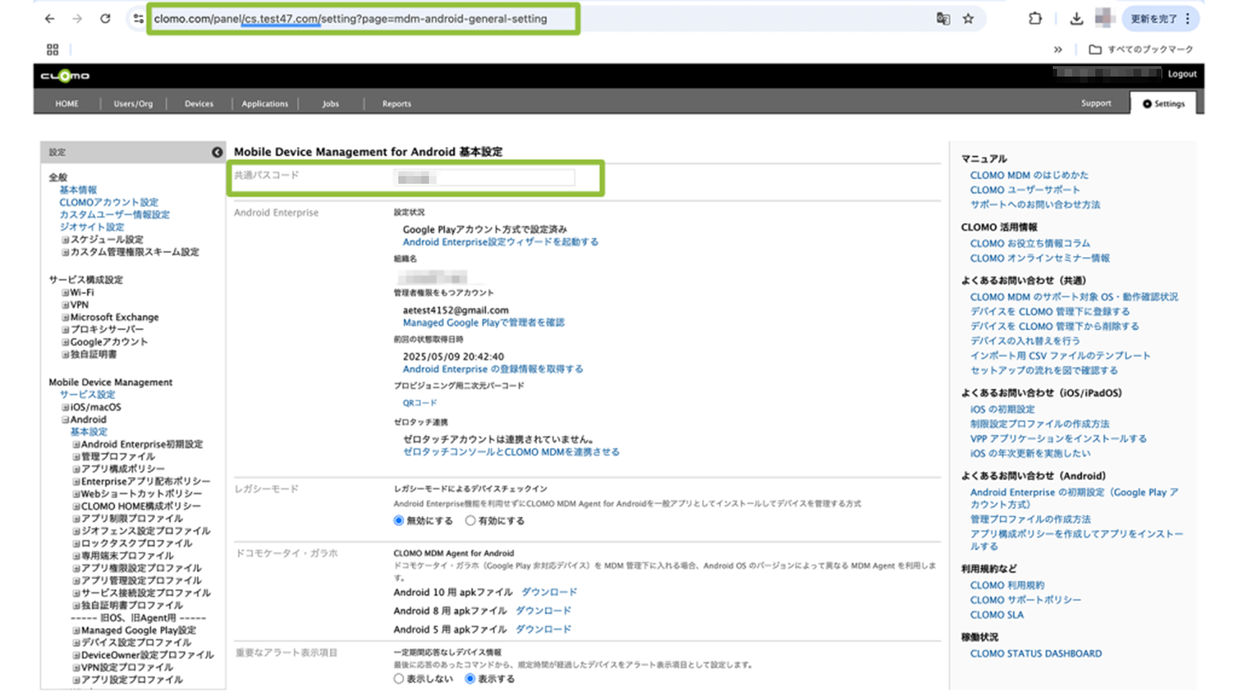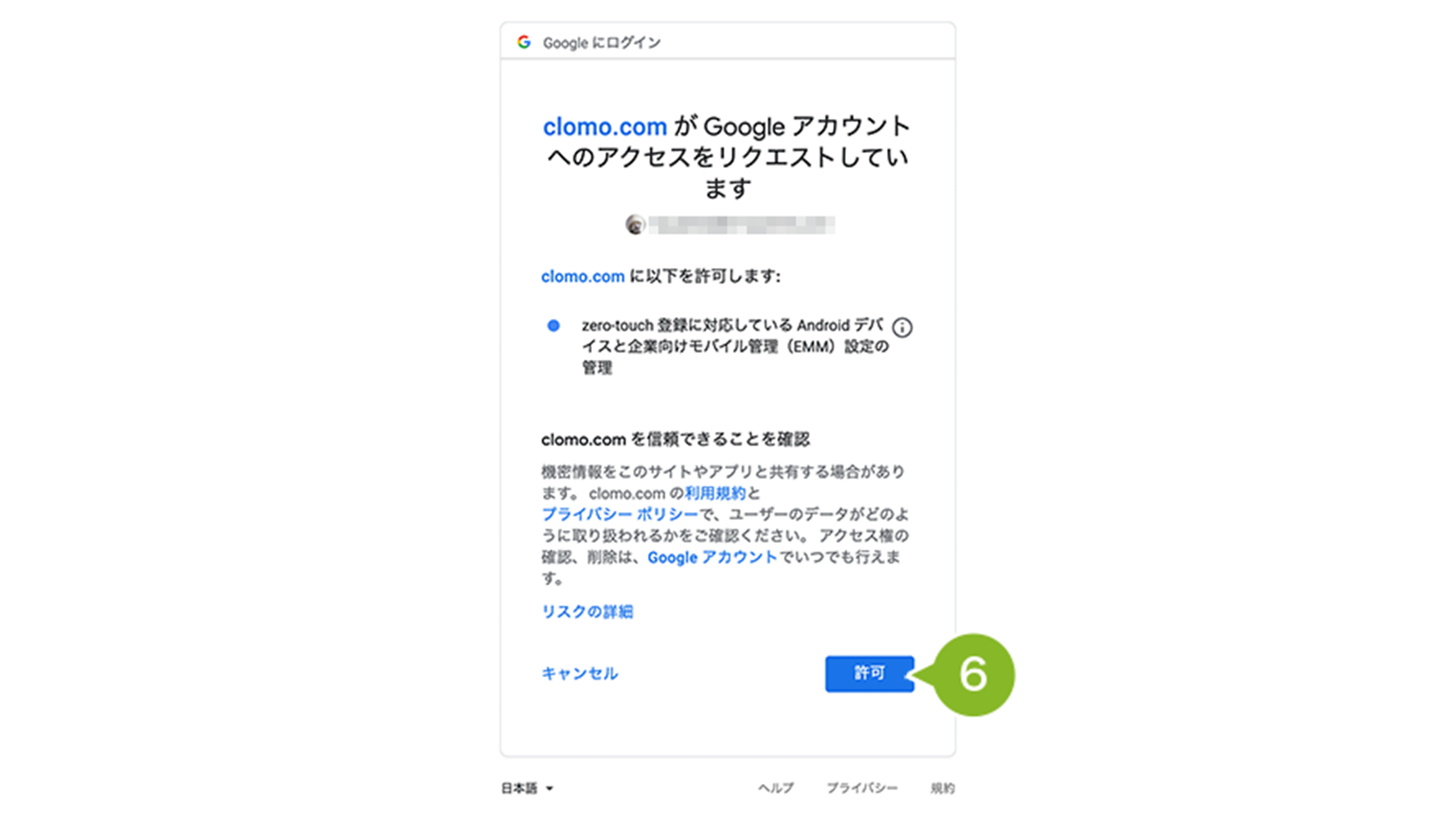ただし、アカウントを失念すると、その環境でゼロタッチポータルの編集ができなくなる可能性があります。そのため、CLOMO では Android Enterprise 設定で使用している Google Play アカウントを、ゼロタッチの管理用アカウントとして申請することを推奨しています。