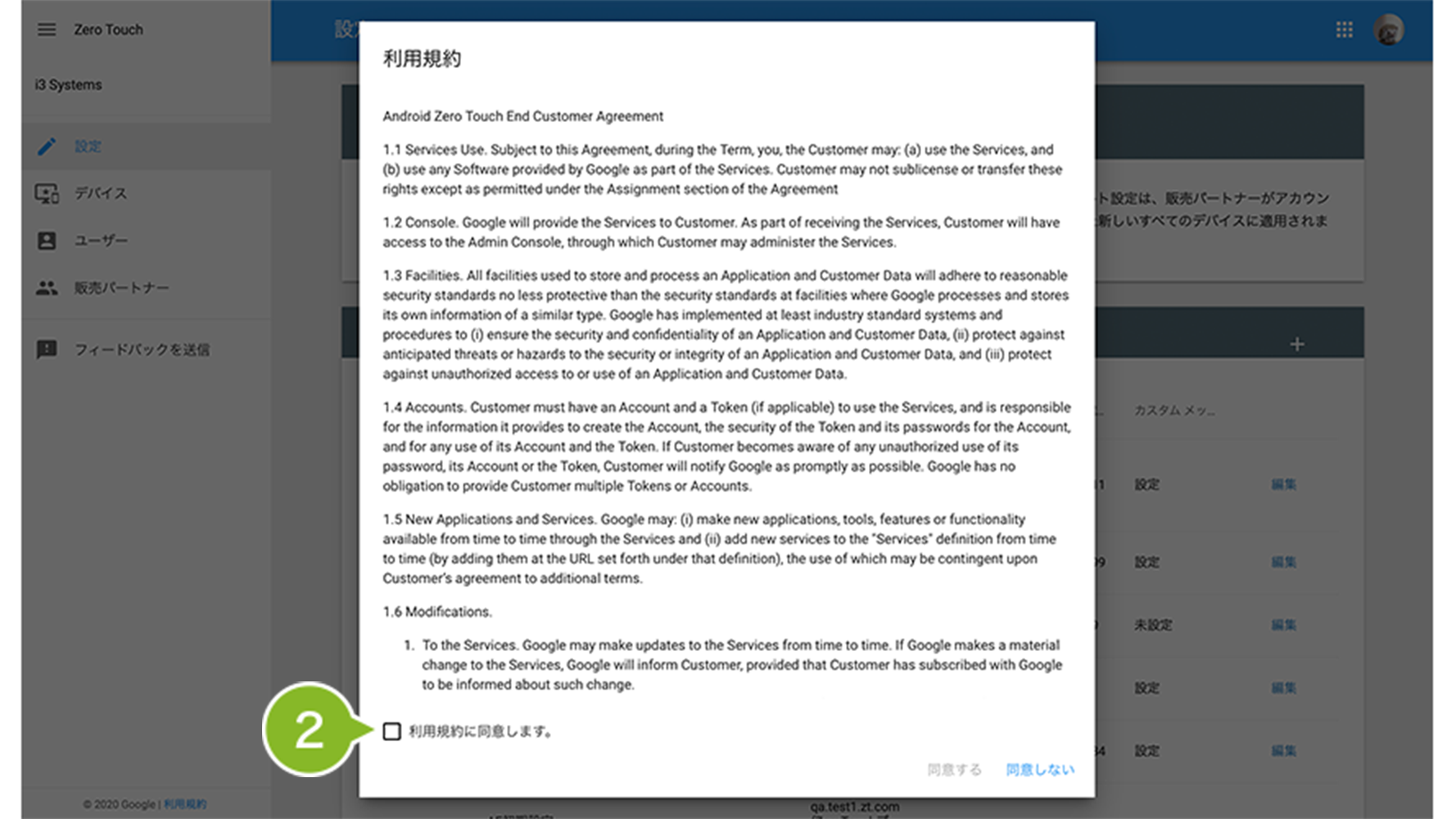 2. 利用規約が表示されます。内容を確認し、問題がなければ[利用規約に同意します]にチェックを入れ、[同意する]をクリックします。
