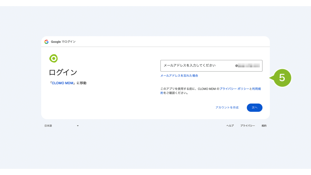 12. CLOMO アカウントを入力し、[次へ]をタップすると「アカウント作成の画面」が表示されます。
