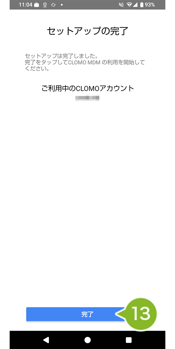 13. 「セットアップの完了」画面が表示されたら[完了]をタップします。