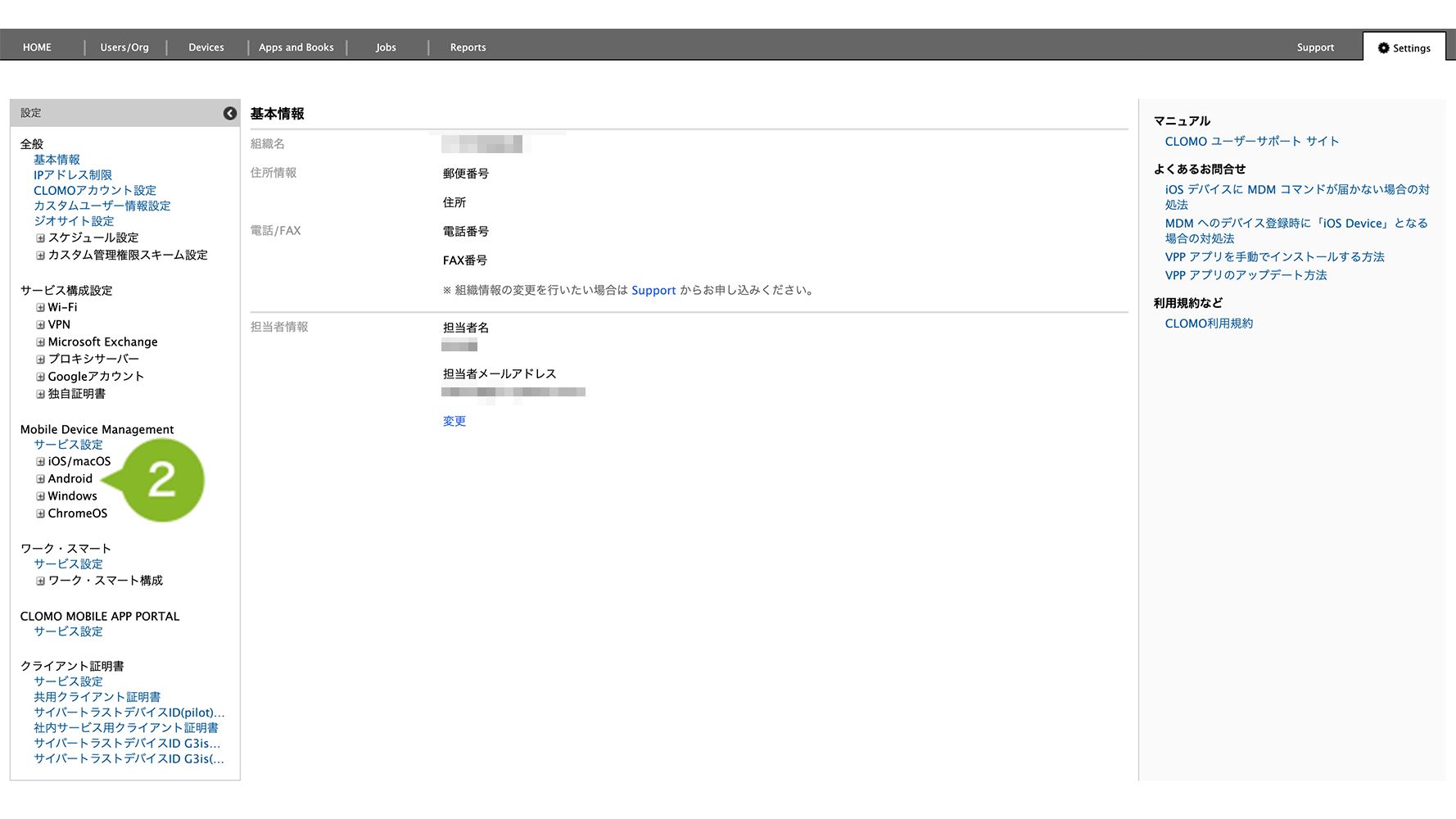 2. 「Mobile Device Management」から[Android]をクリックします。