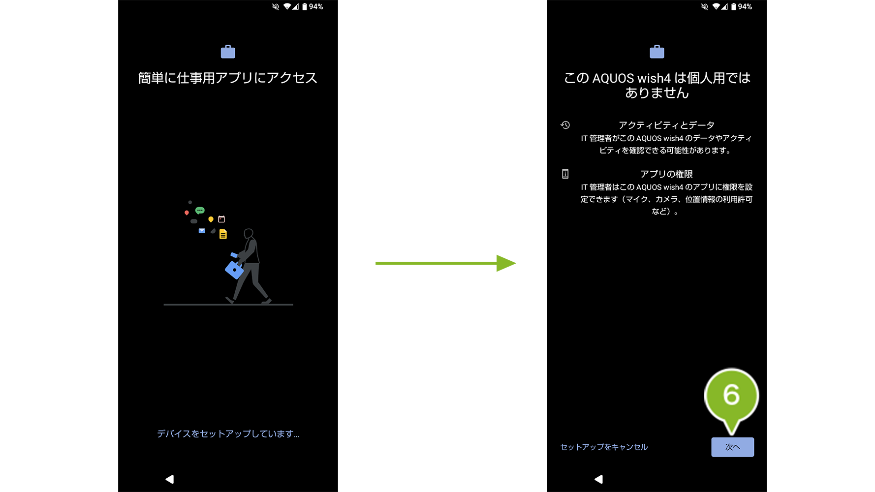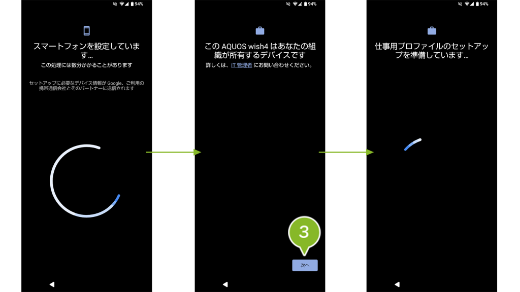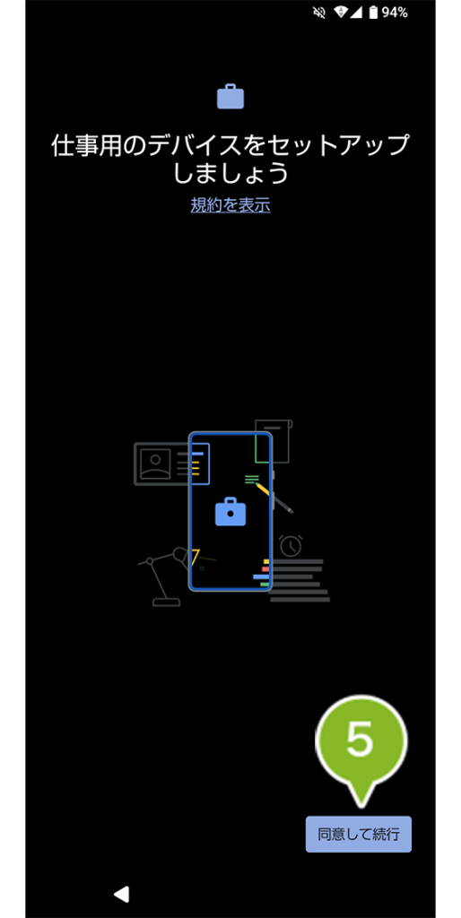 ※ Work Profile on company-owned モードを選択した場合、以降の手順が異なります。