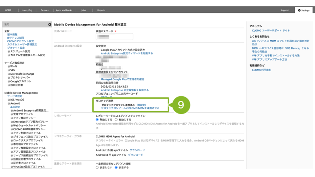 9. CLOMO PANEL の画面に戻ります。「ゼロタッチ連携」が「ゼロタッチアカウント連携済み」になっていることが確認できれば、設定は完了です。