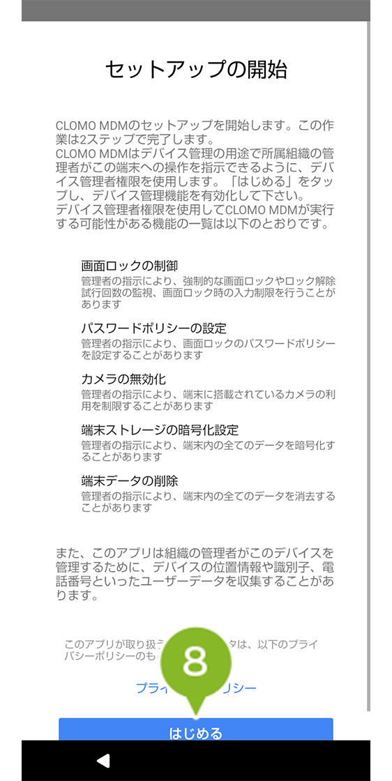 8. セットアップの開始画面が表示されたら[はじめる]をタップします。