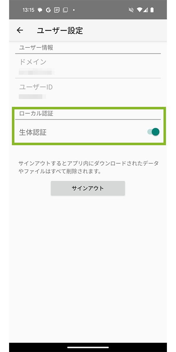 Android デバイスに生体認証(指紋認証、顔認証など)が設定されている場合、デバイスに登録されている生体認証を用いて認証できます。
