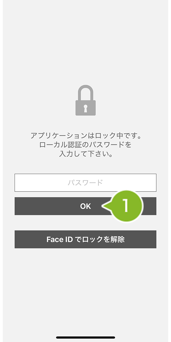 ※ 生体認証を利用する場合は、「Face ID / Touch ID でロックを解除」を選択してください。生体認証については事前にオンにしておく必要があります。詳細は「ローカル認証に生体認証を用いる」をご参照ください。