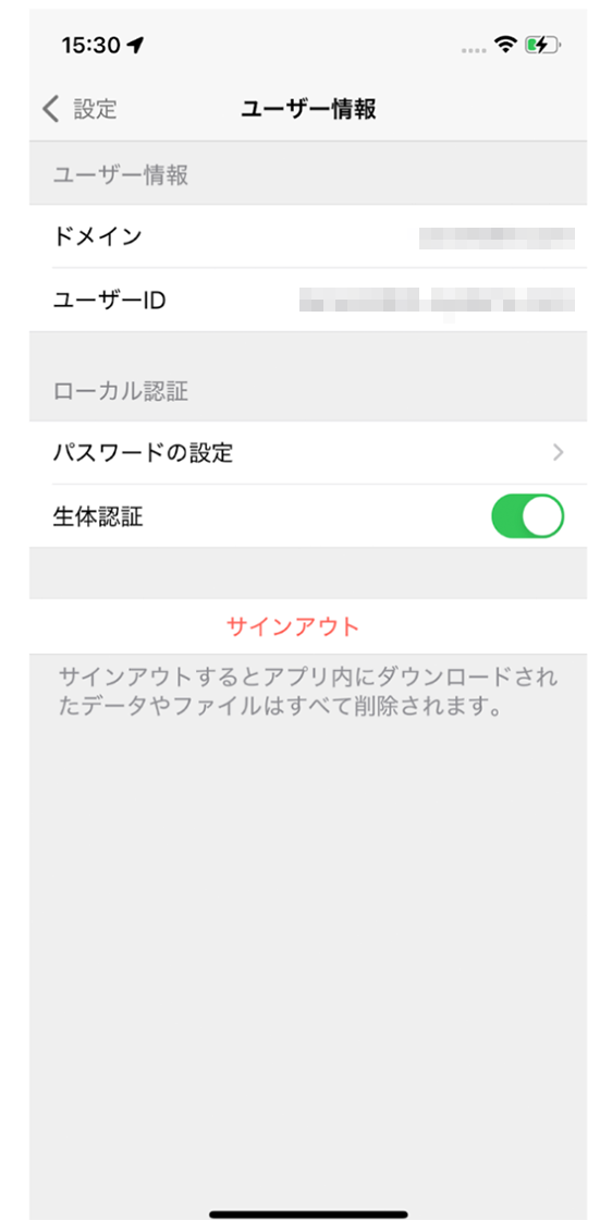 管理画面よりローカル認証設定を有効にすることで、アプリを閉じてから、管理者が設定した一定時間が経過した後にアプリを開くと、ロック解除の認証が必要となる機能です。