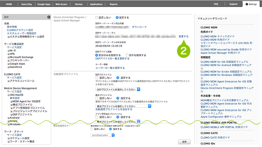 4. Automated Device Enrollment 欄の ADE サーバートークン の[変更する]をクリックします。