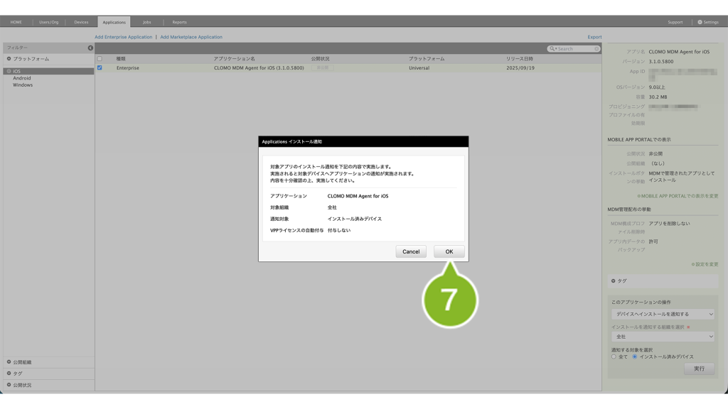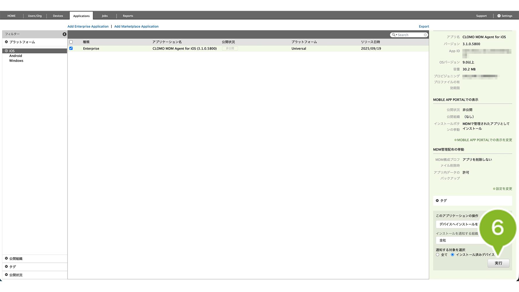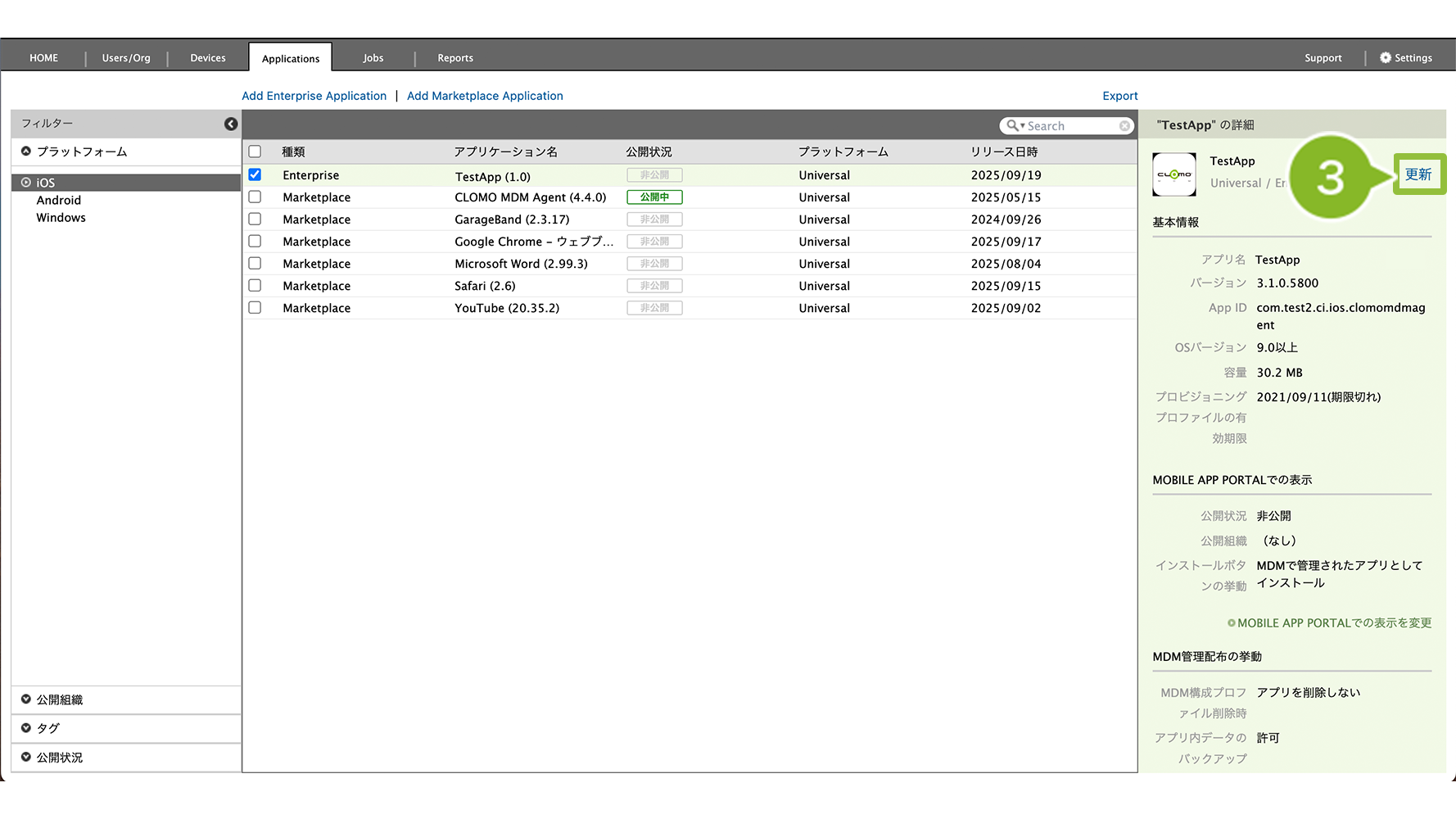 この時点ではデバイスにインストール済みのアプリケーションはアップデートされません。