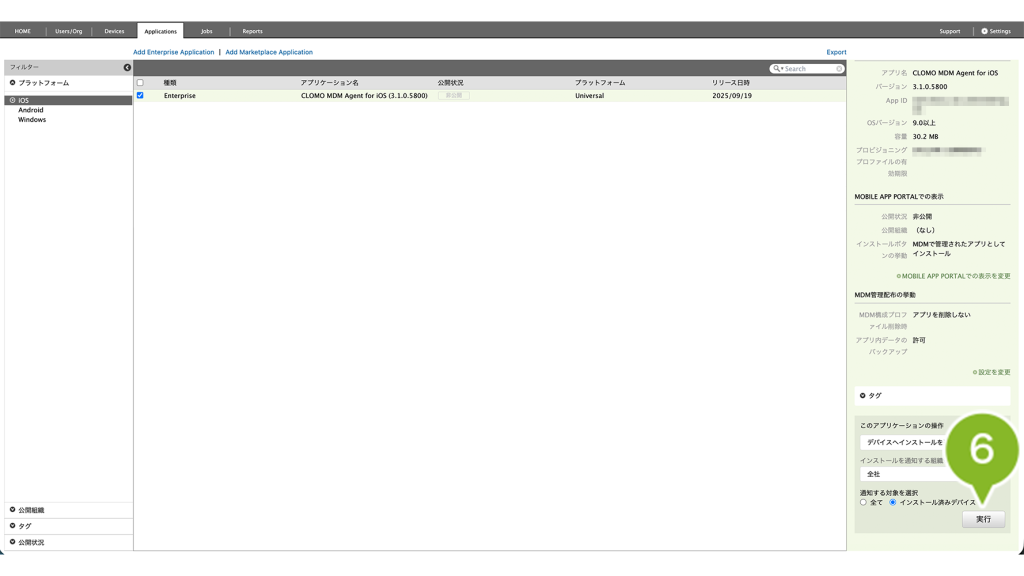 ※iOS8以前のデバイスでは、MDM で管理されていないアプリ を MDM で管理されたアプリ で上書き、また MDM で管理されたアプリ を MDM で管理されていないアプリ で上書きすることは iOS の仕様上できません。 すでにインストールされているアプリケーションを一度削除した後、新規でインストールをしてください。