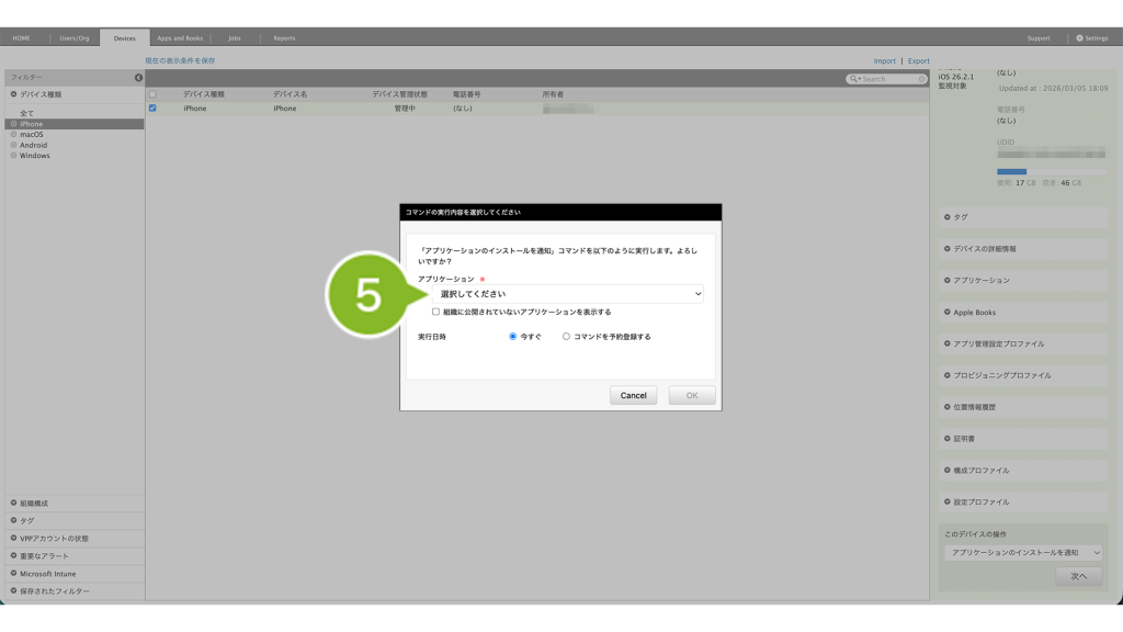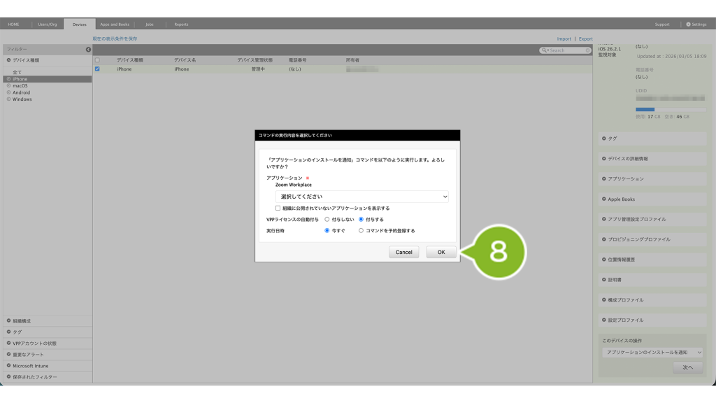 - 選択した組織や全 iOS デバイスに対してアプリケーションをインストールする場合