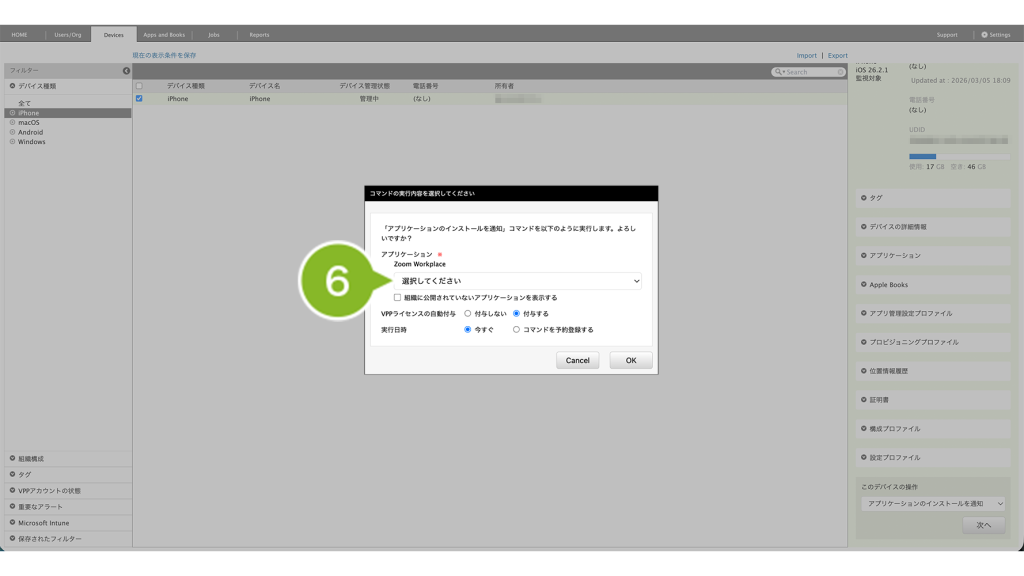 アプリケーションのインストール時に VPP ライセンスの自動付与が可能です。インストールを実行せずライセンスの付与 / 剥奪のみを実施したい場合はこちらをご参照ください。