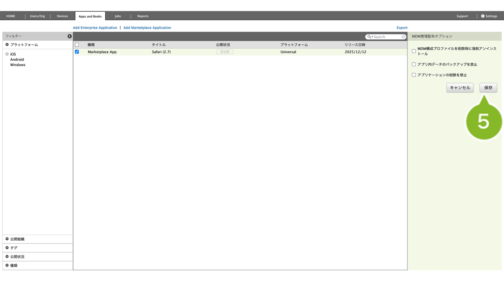 本設定は、MDM で管理されたアプリにのみ有効です。