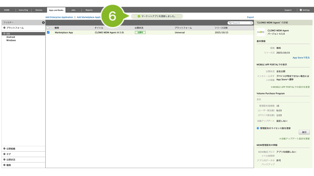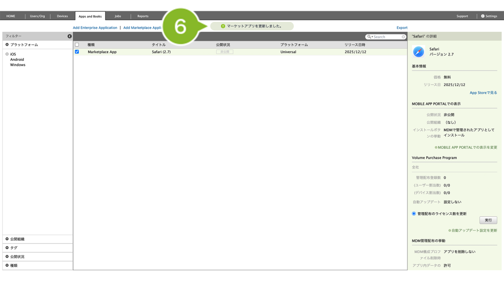 ※ 同期ができない場合は、VPP サービストークンの更新をお試しください。