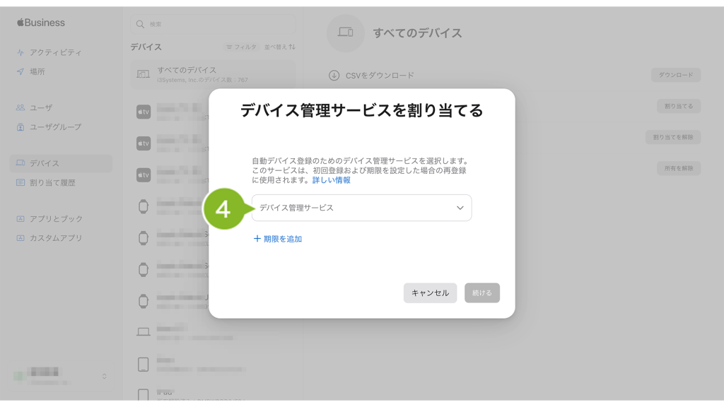 4.「デバイス管理サービスを割り当てる」を選択します。