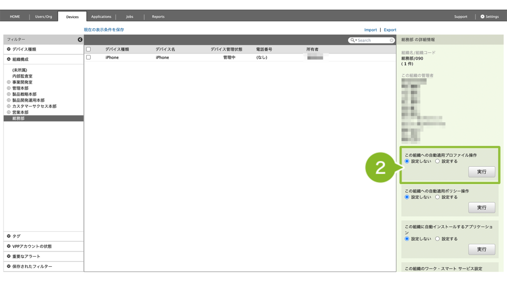 ※「iPhone を組織 / 団体から削除」を選ぶと、ABM 上でデバイスの所有が解除されます。再度 ADE 化が必要になるため、選択しないでください。