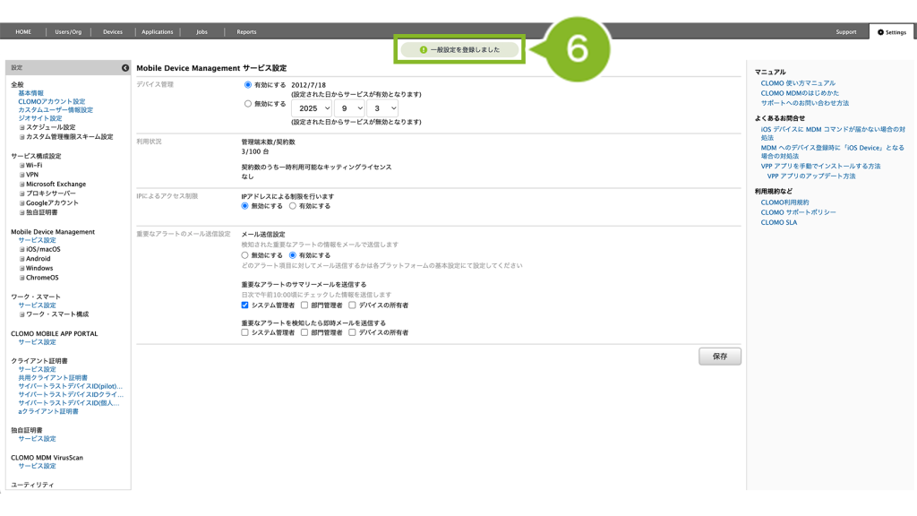2. Mobile Device Management の[サービス設定]をクリックします。