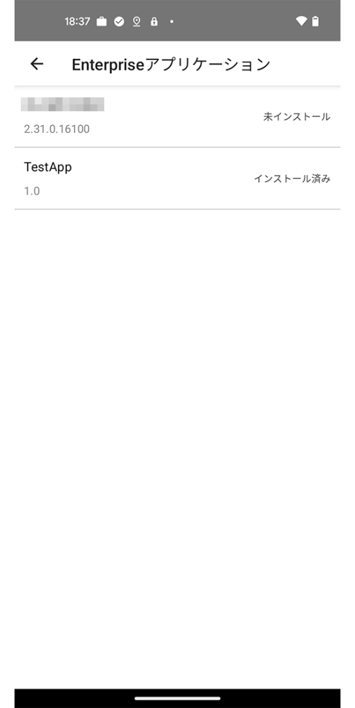 Enterprise アプリ配布ポリシーで配布したアプリケーションが一覧で表示されます。