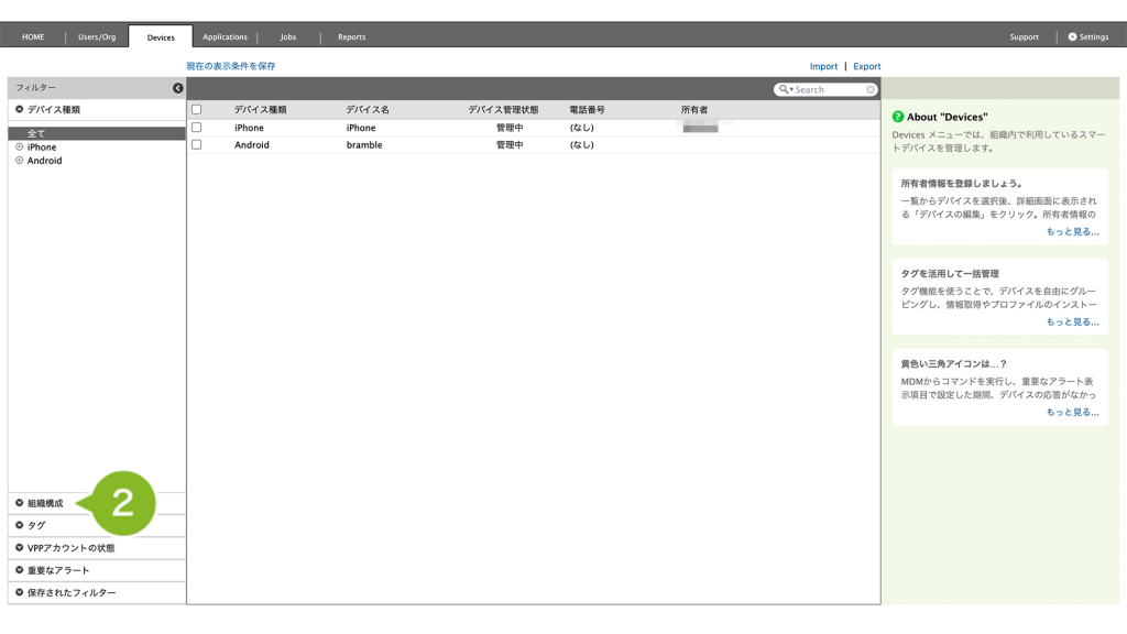 1. CLOMO PANEL にログイン後、[Devices]をクリックします。
