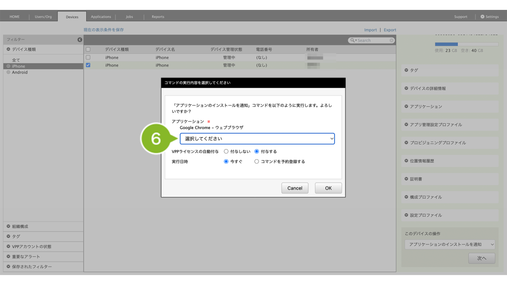 2. インストールしたい iOS デバイスを選択します。複数選択もできます。