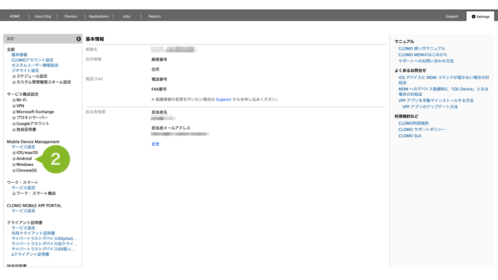 2. 「Mobile Device Management」から[Android]をクリックします。