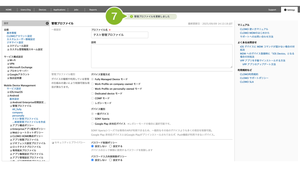 自動適用に設定している管理プロファイルを編集すると、自動適用範囲内のデバイスに変更が反映されてしまうのでご注意ください。