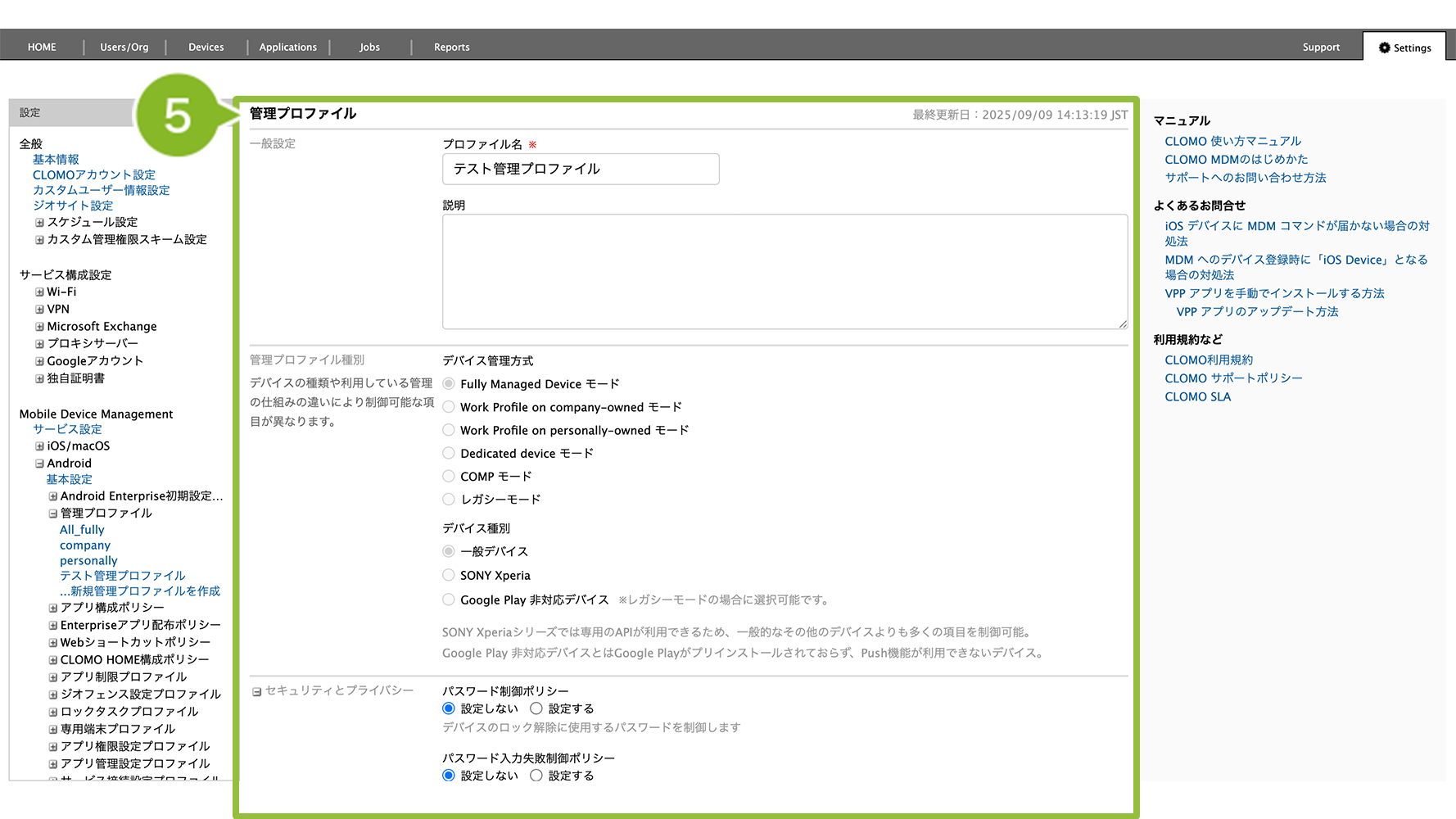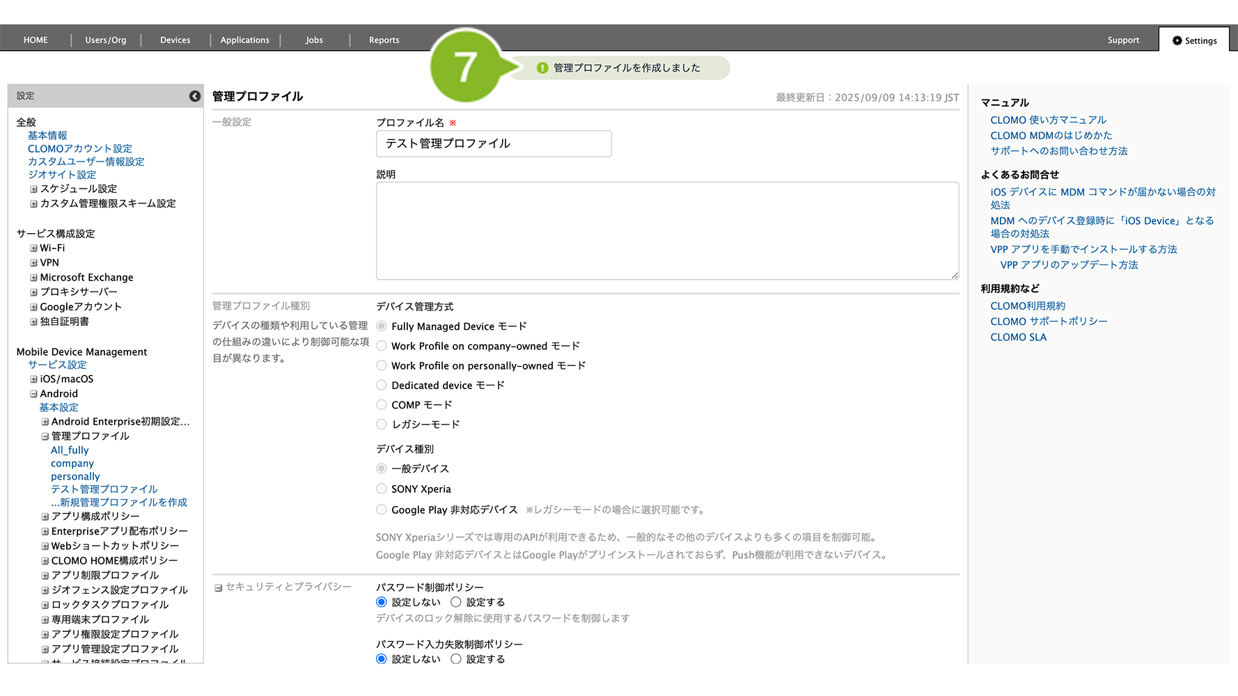 作成済みの管理プロファイルを編集する方法は、以下のとおりです。
