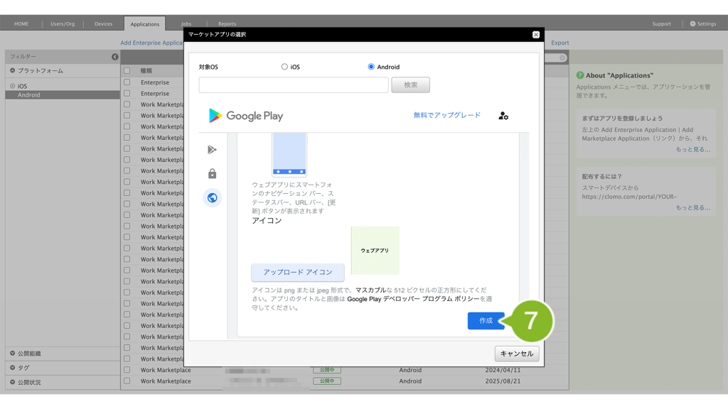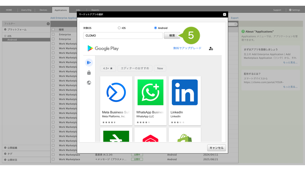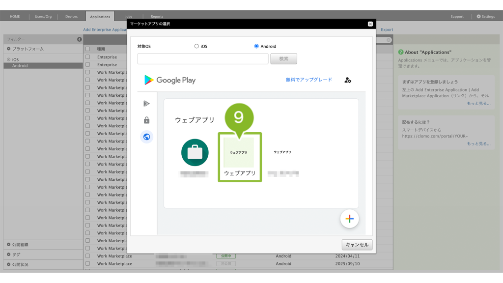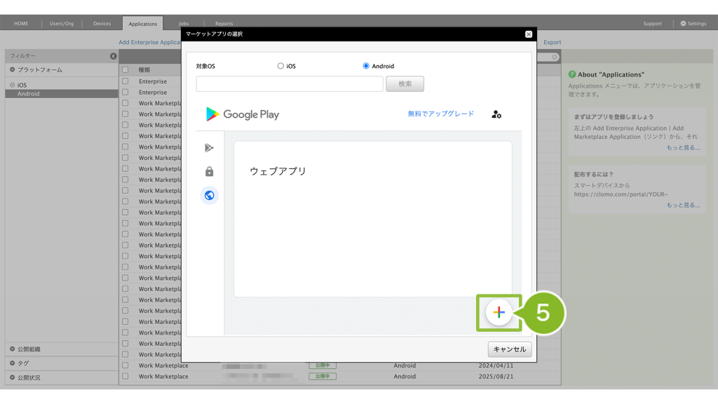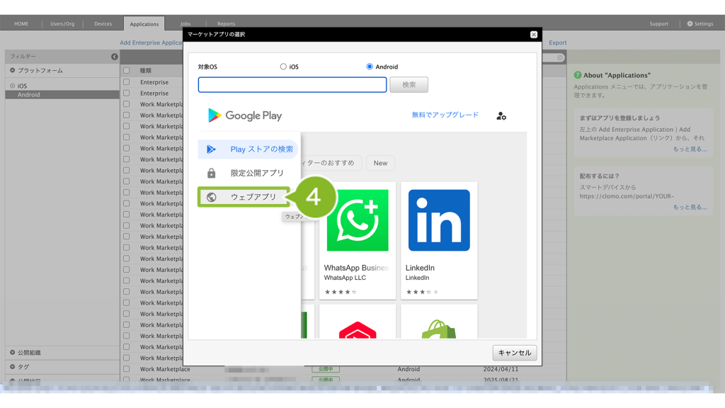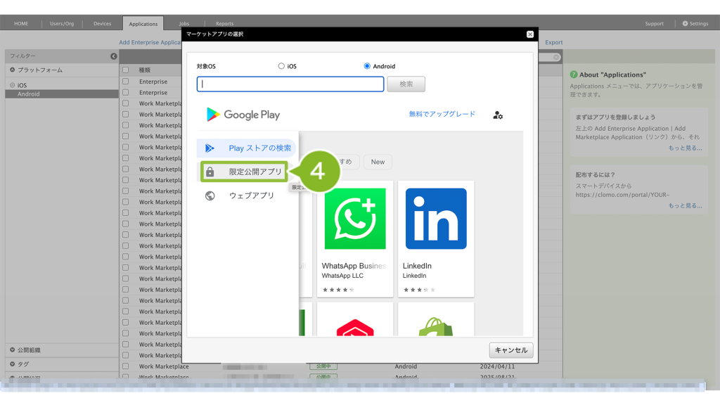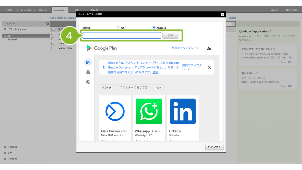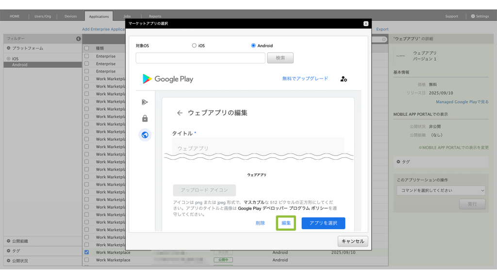 登録することで、Android Enterprise デバイスに対して、アプリケーションの配布がおこなえるようになります。※