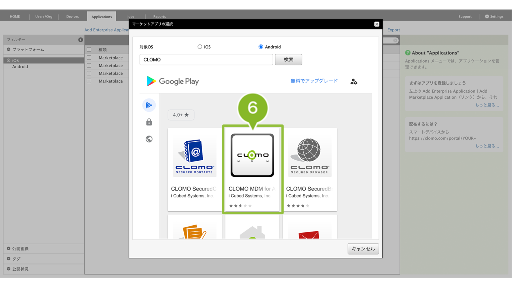 ご利用するには、CLOMO MOBILE APP PORTAL 契約が必要です。