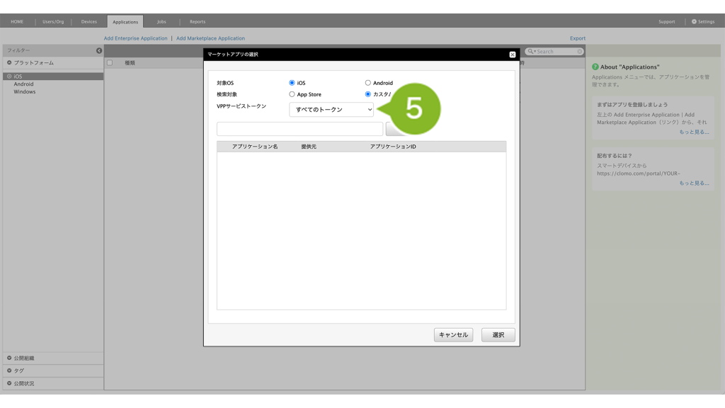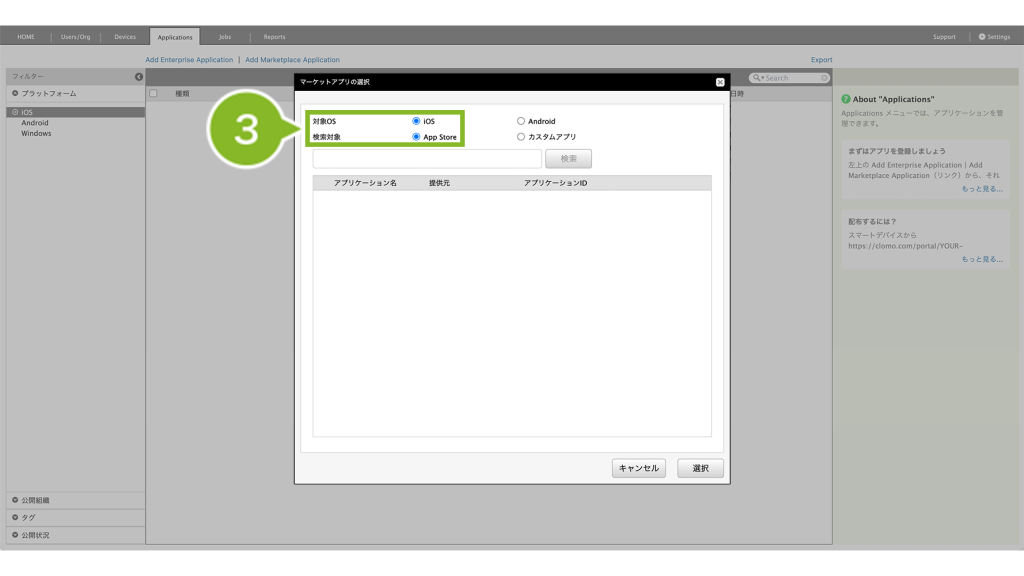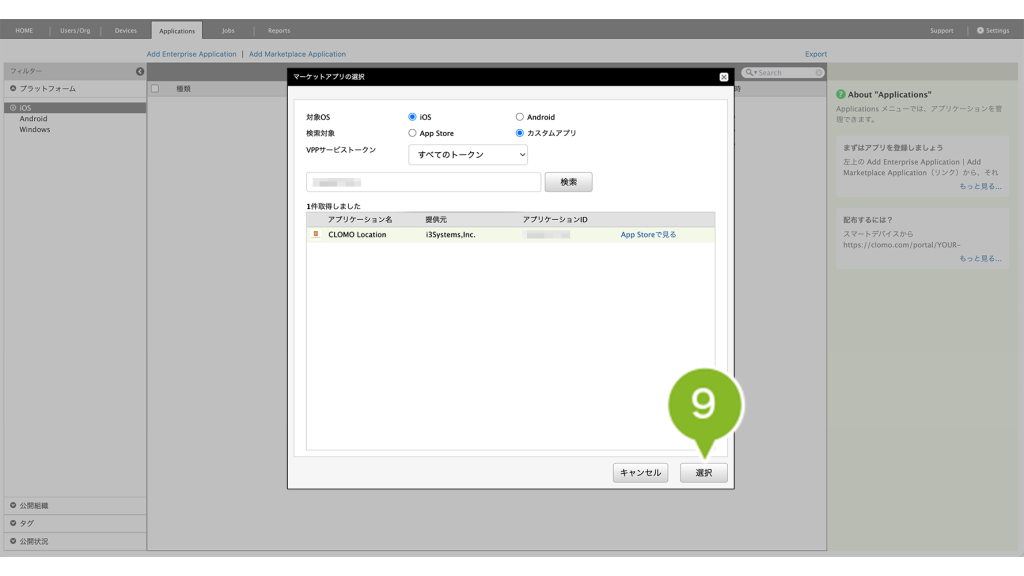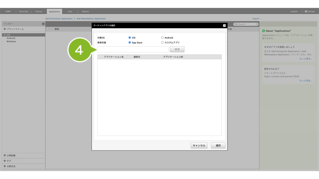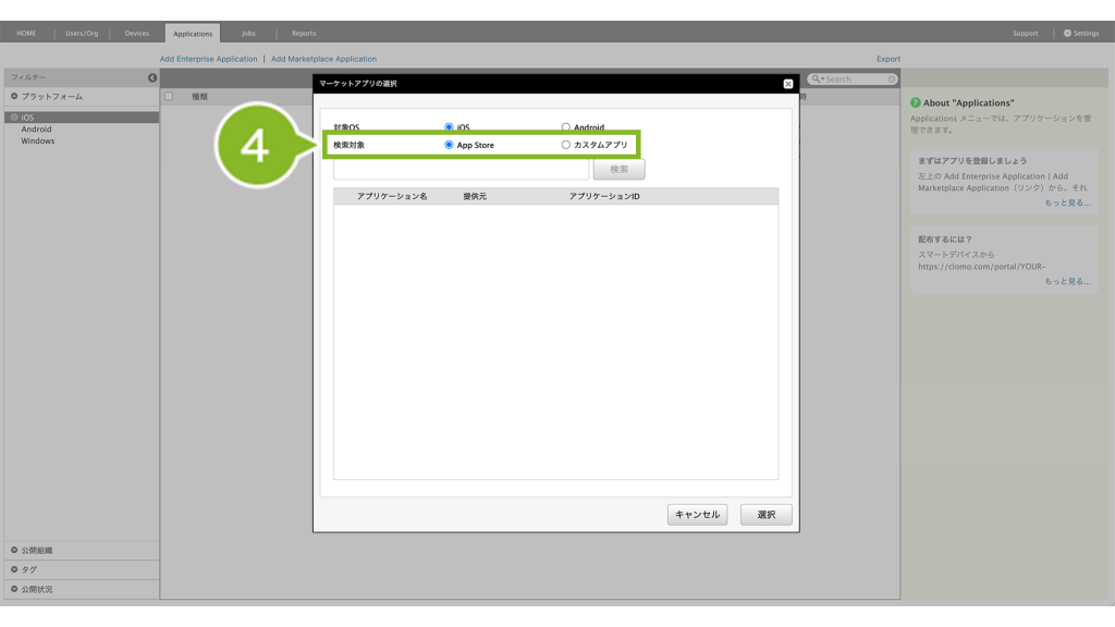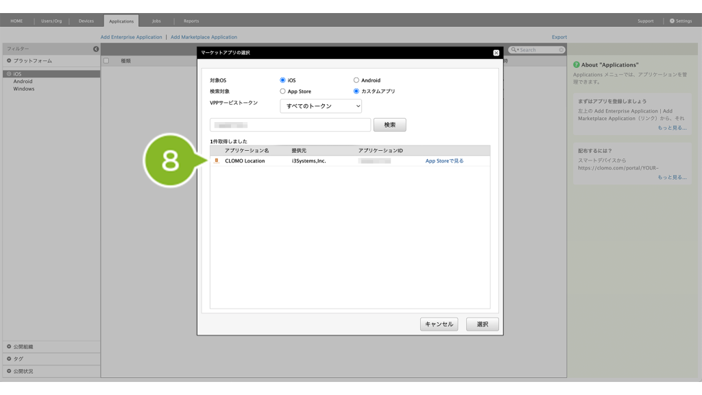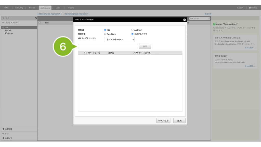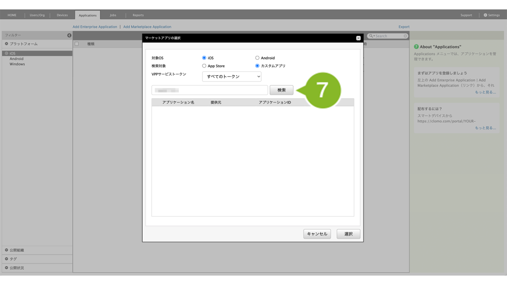 ・カスタムアプリ(App Store の非公開領域に登録したアプリ)を Applications 画面に登録したい場合