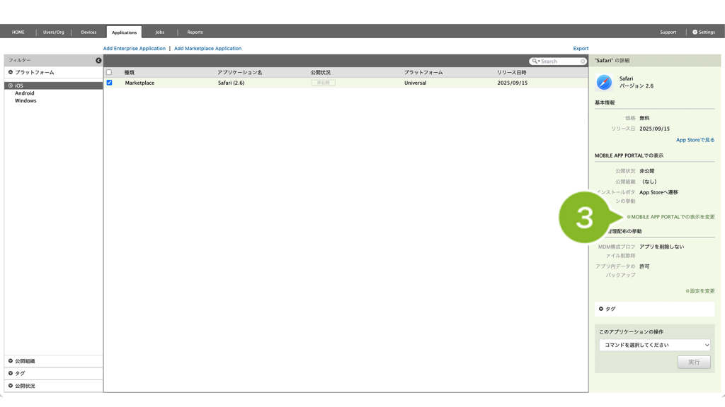 3.[MOBILE APP PORTALでの表示を変更]をクリックします。