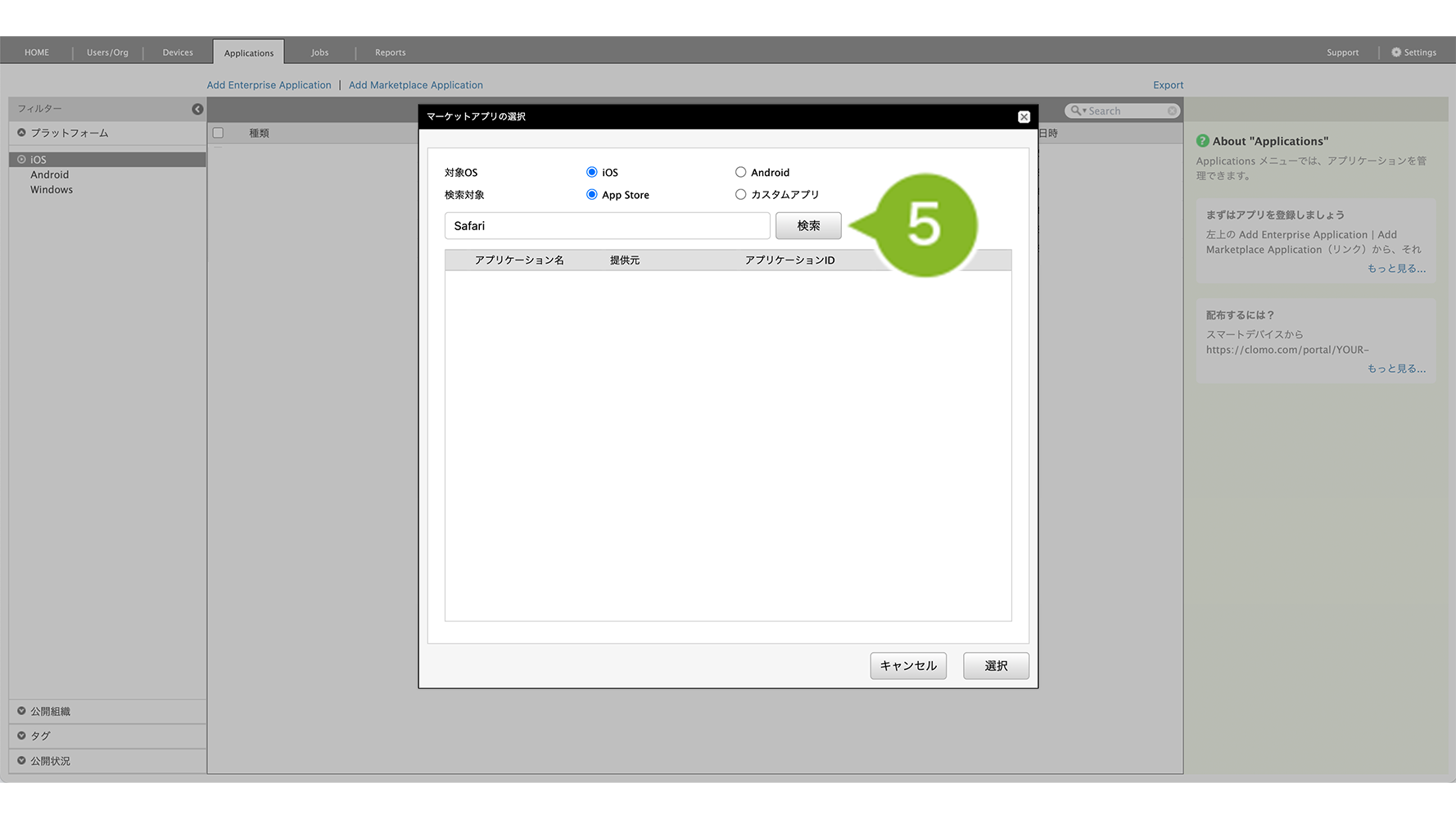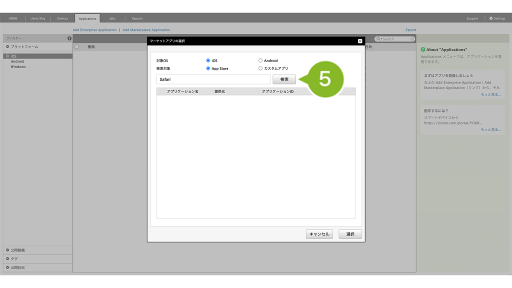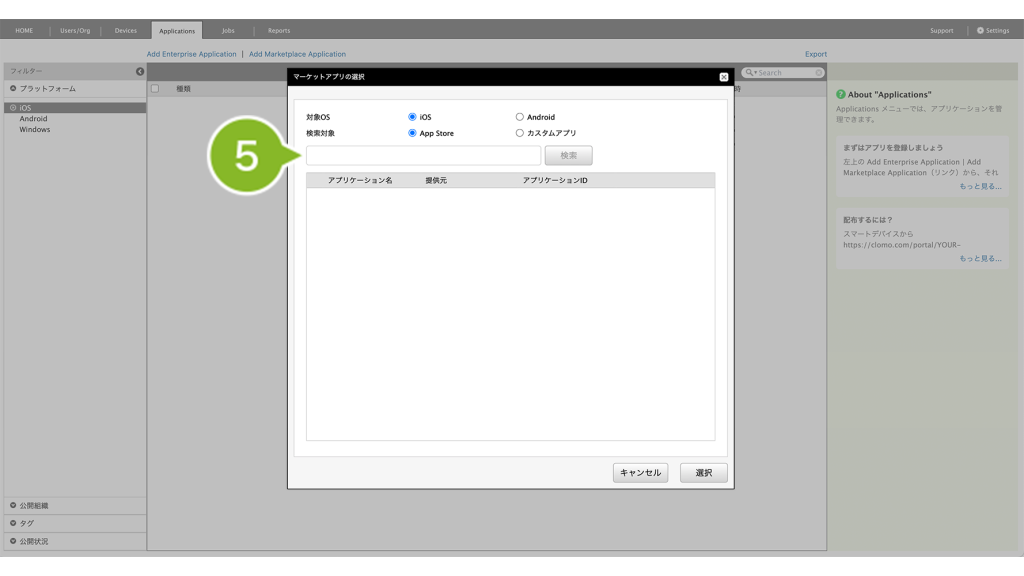 カスタムアプリ | App Store の非公開領域に登録したアプリを検索したい場合に選択します。 |